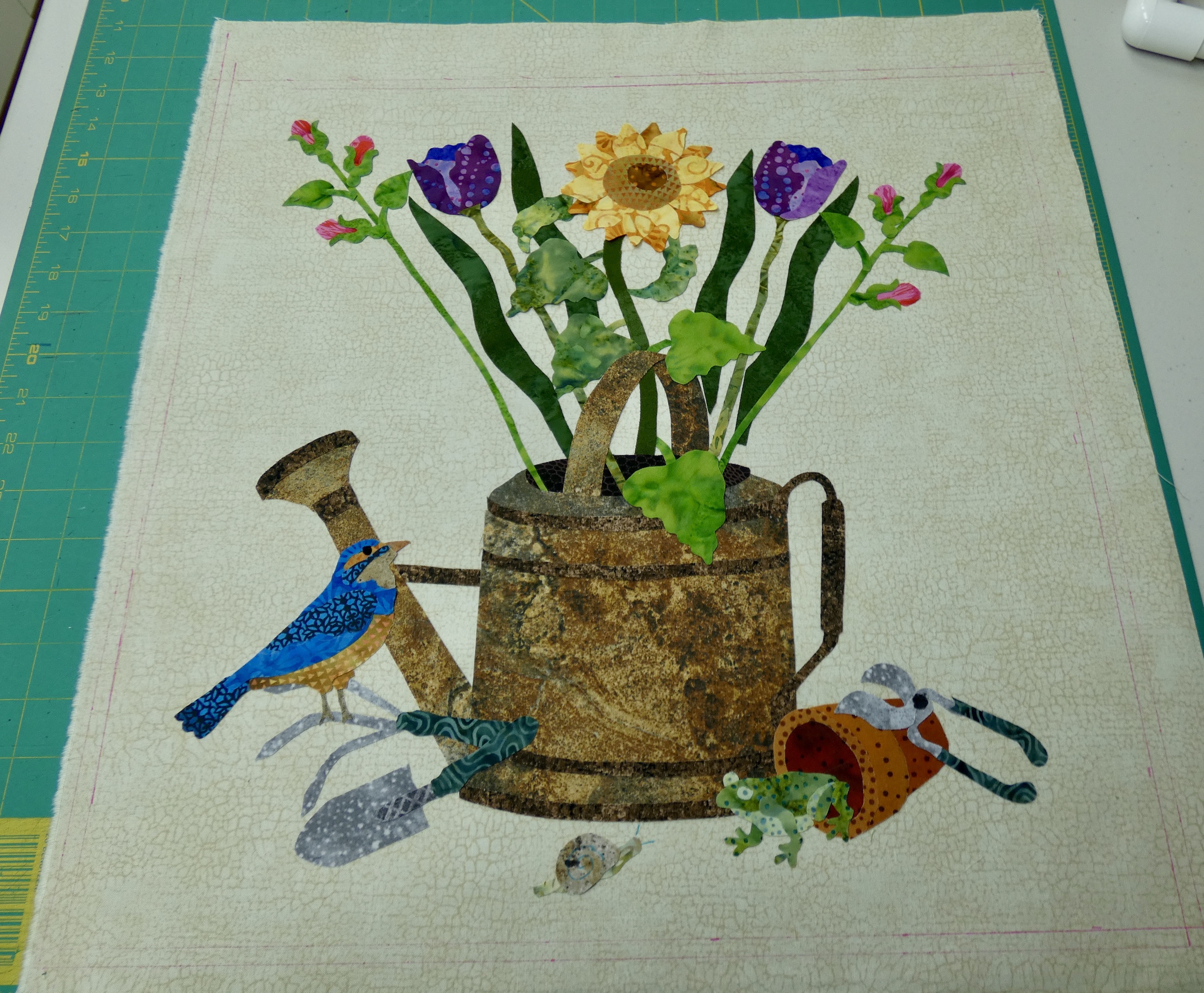 on a little frog right now. Probably won't be any vases in my garden. Looking forward to learning some new applique techniques and seeing all the wonderful quilts that will be made with this BOM.