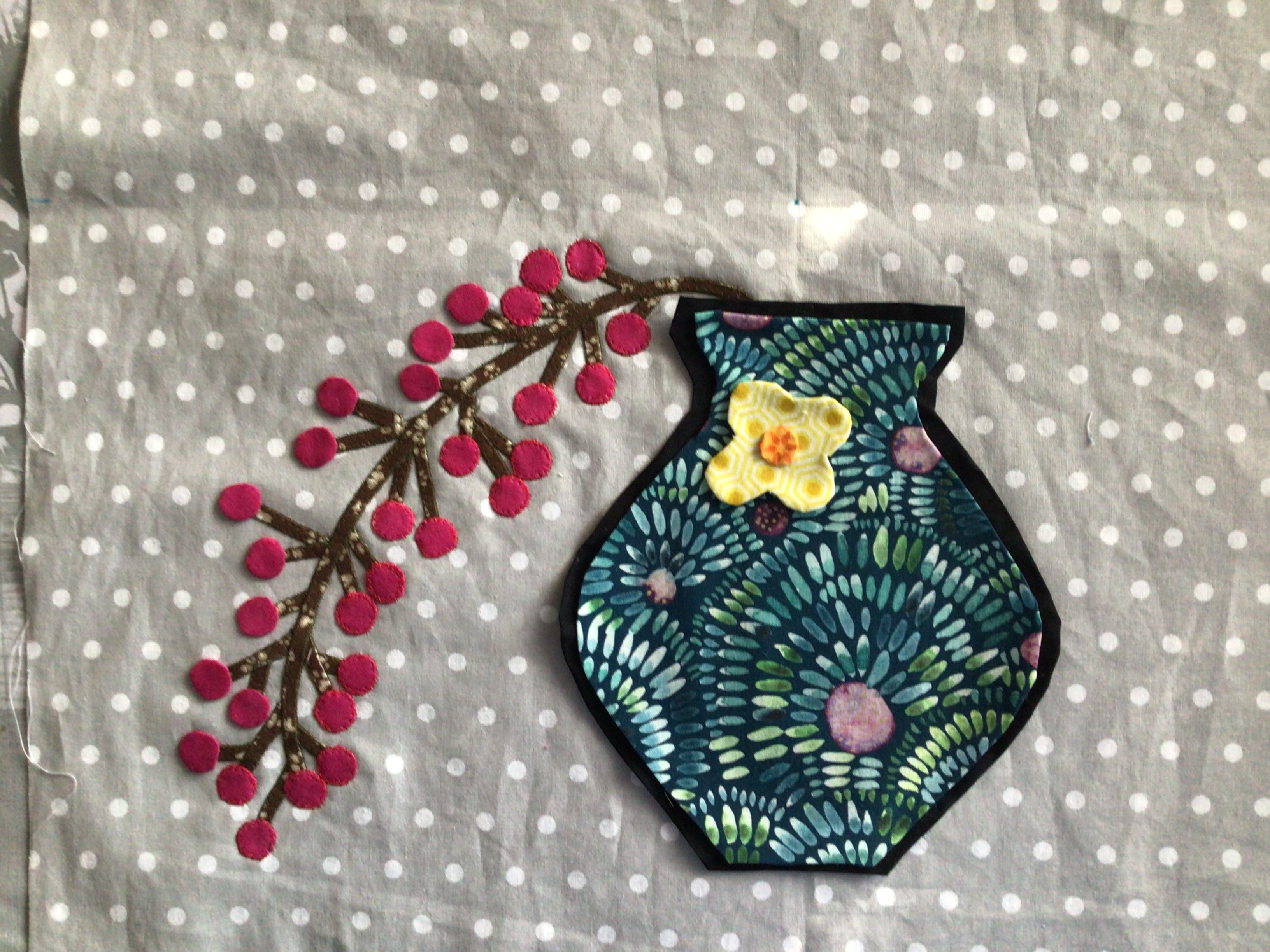 I've been tempted to do these finished-edge, but I want to use this project to get good at needle-turn. The vases will be done with Appliquick, though.