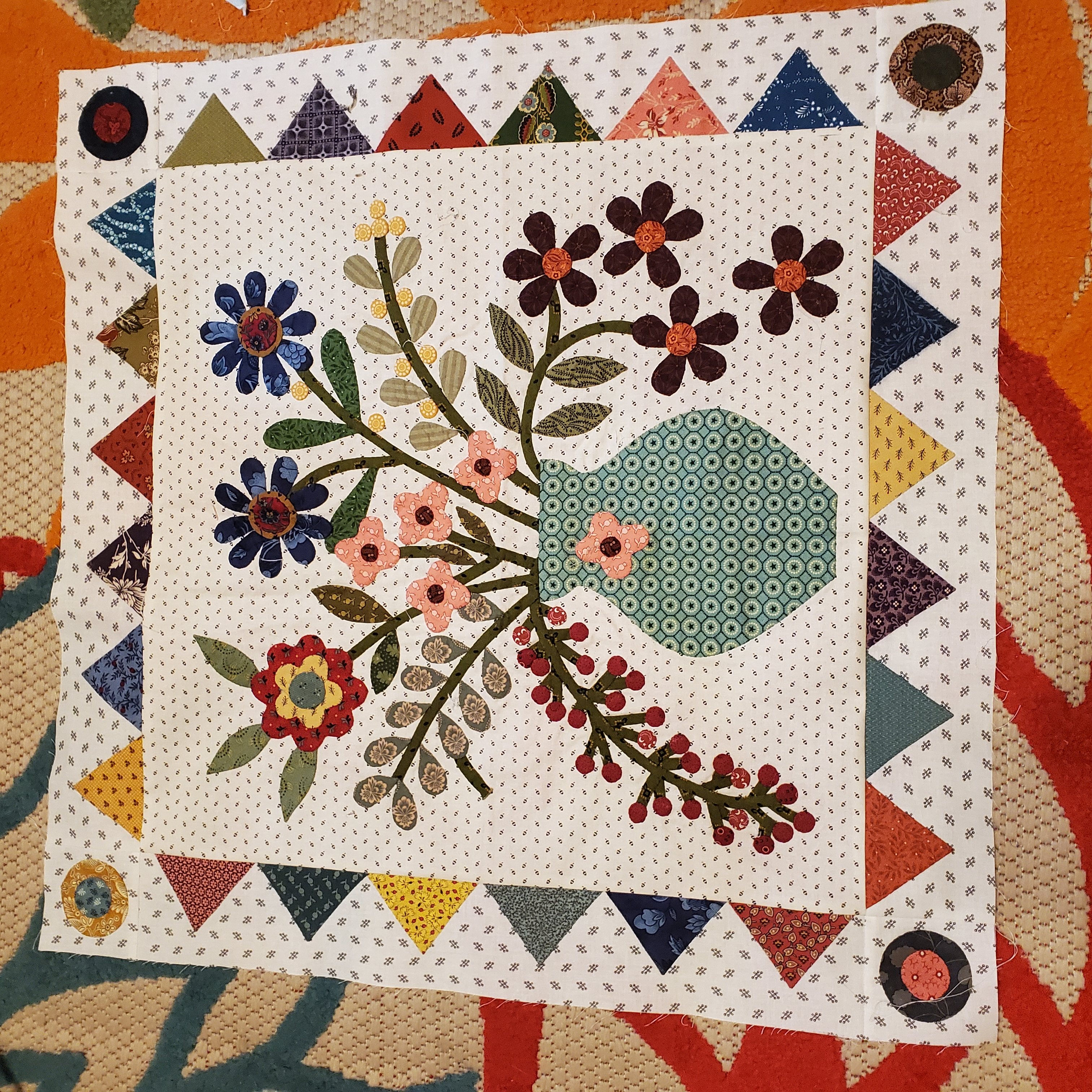 Well, here it is, the end of 2022, and I finally have finished my 2021 BOM quilt! I apologize that the photo is not centered....