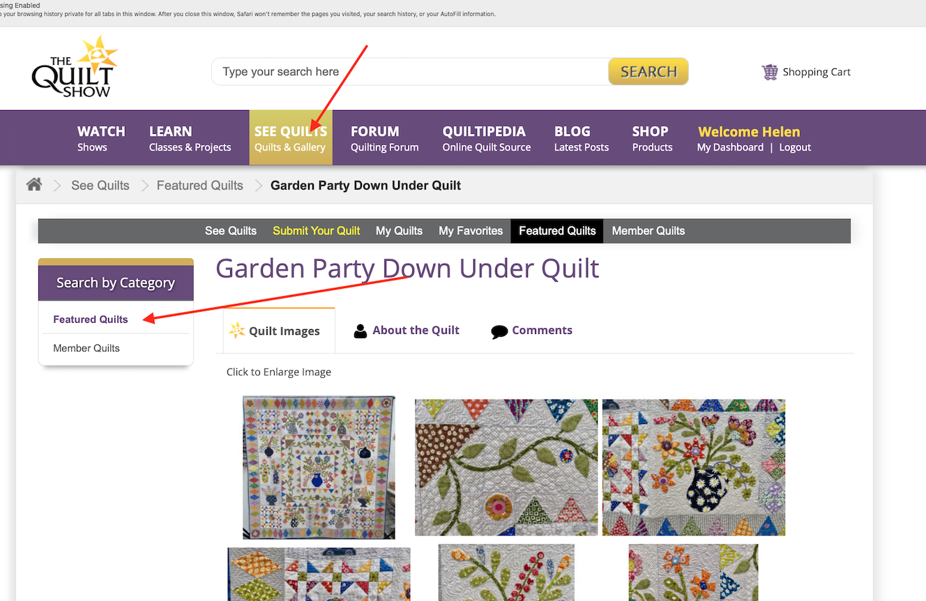 Someone asked, and John Anderson came thru with fabulous photos. To find them you go to See Quilts on the top banner. Then featured quilts. I took a screen shot to help people find it. They are great. Thank you so much
