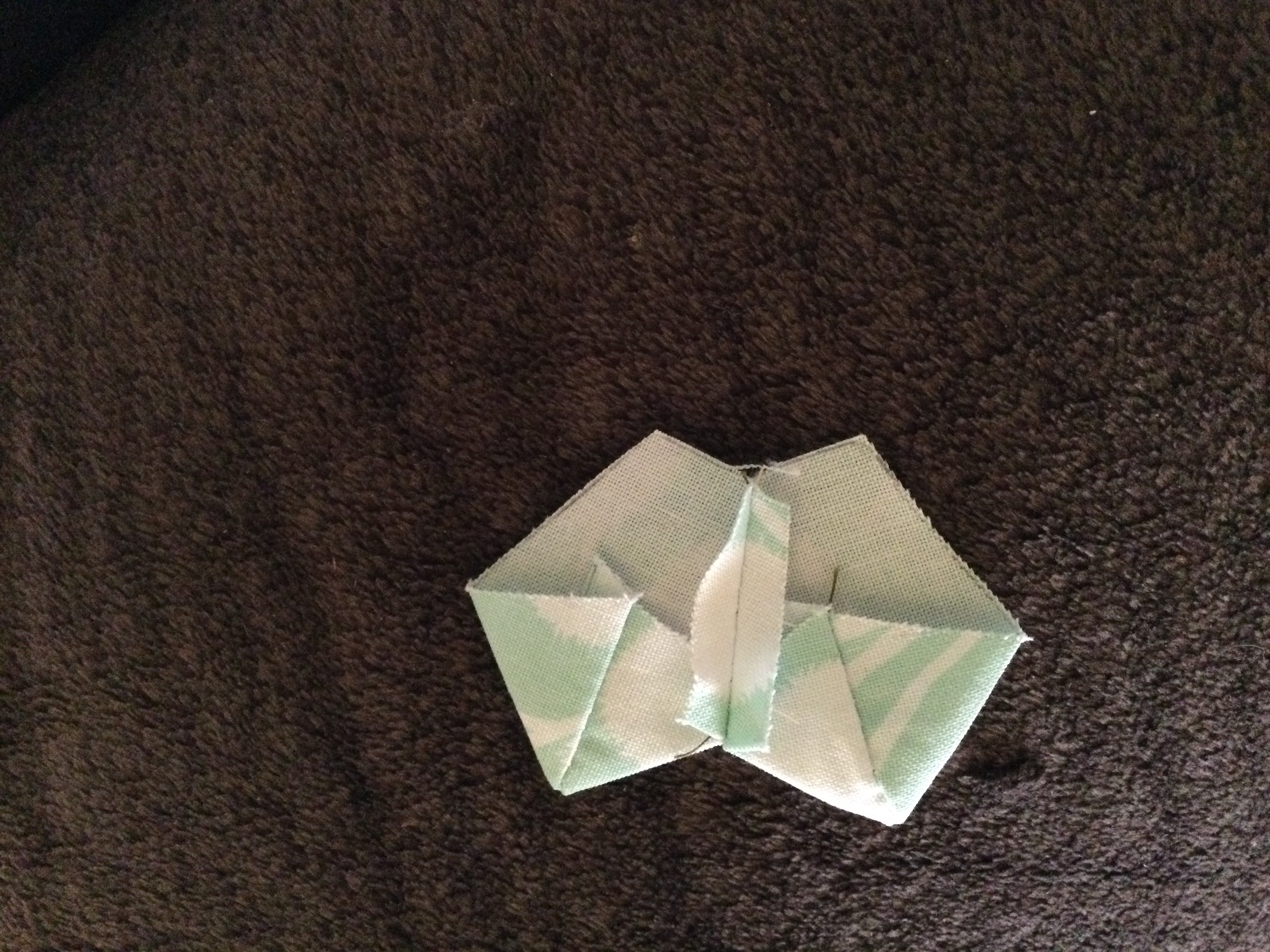 3) turn inside out, center seam and press (Sue Cleveland's Prairie Point tool very helpful)- you now have finished points!