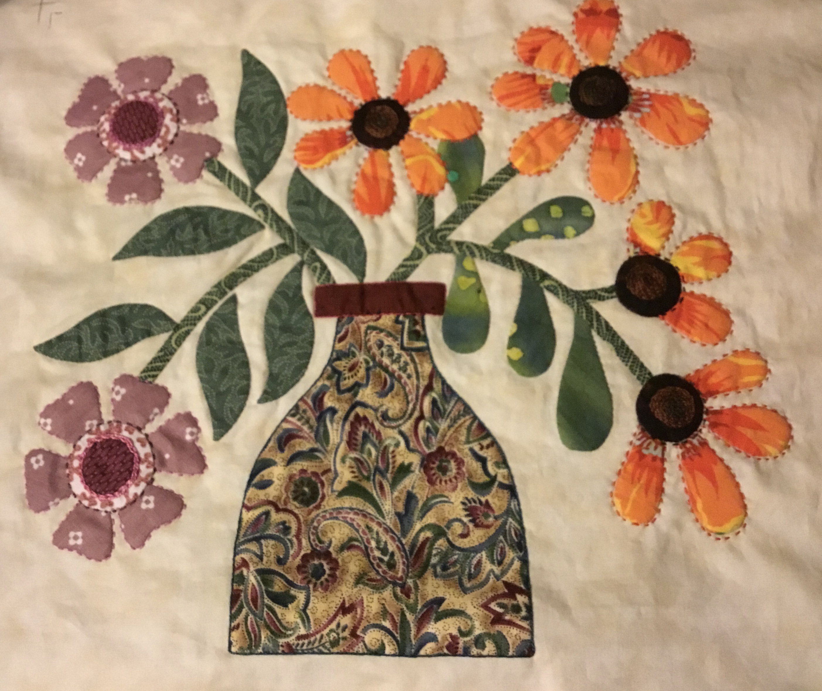 Happy Memorial Day! I just finished month 5. I rearranged things a bit because I wanted to balance background, color, and vase shape. The diagonal backgrounds are the same fabric, although in this picture the bottom left looks darker…Last edited by Jo Anne; 05-30-2022, 10:08 AM.