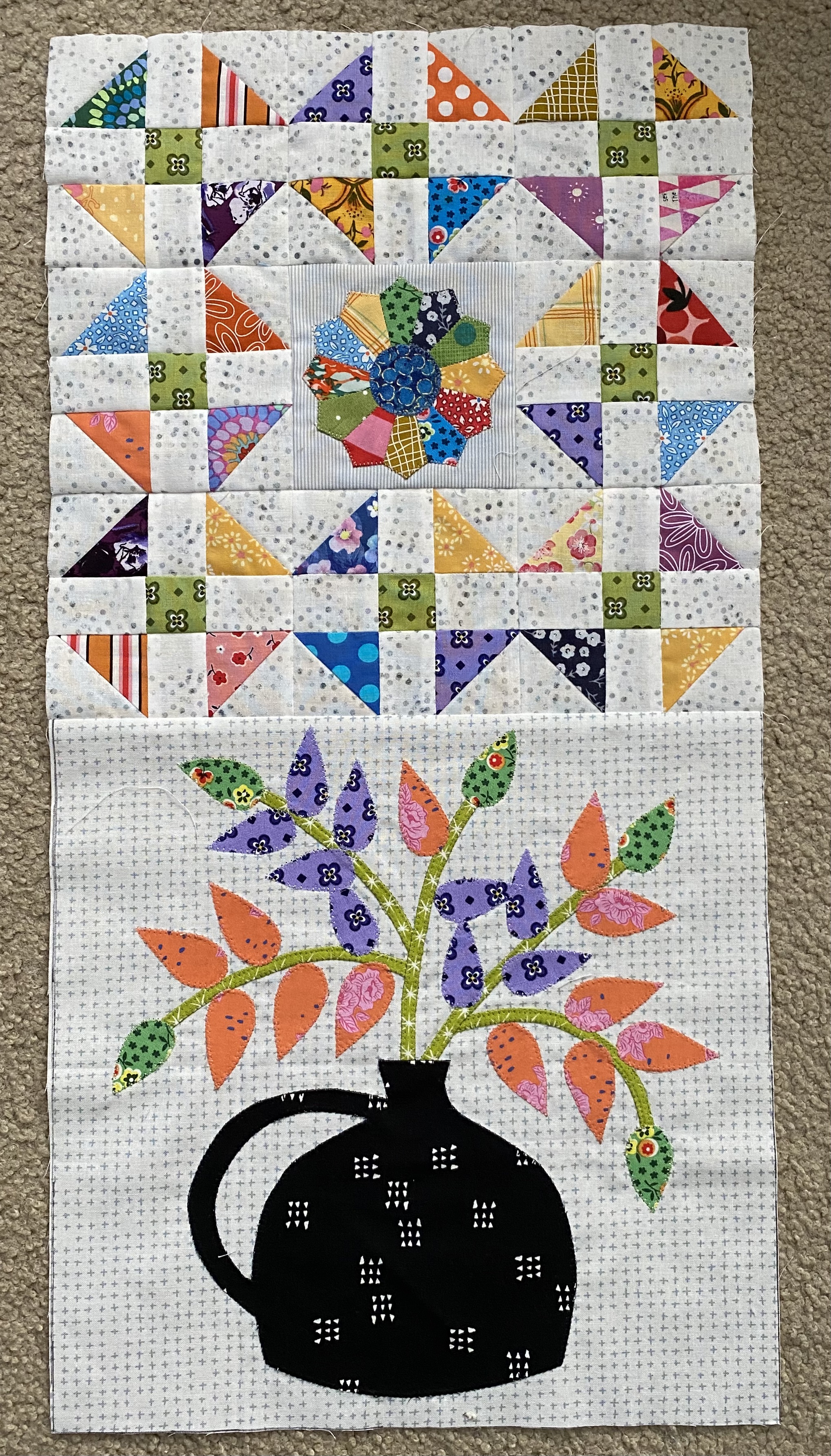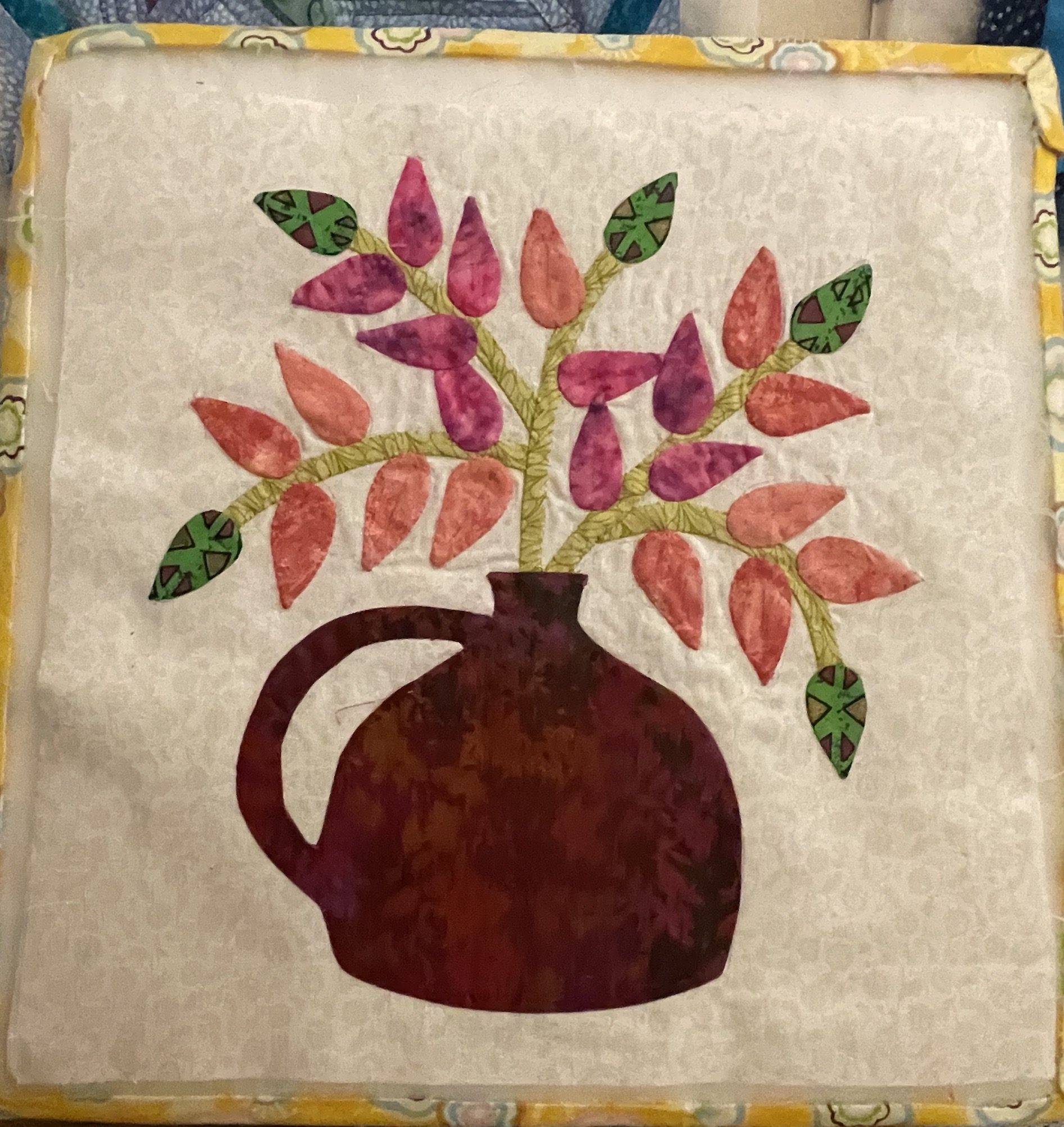 Well, here it is, the end of 2022, and I finally have finished my 2021 BOM quilt! I apologize that the photo is not centered....