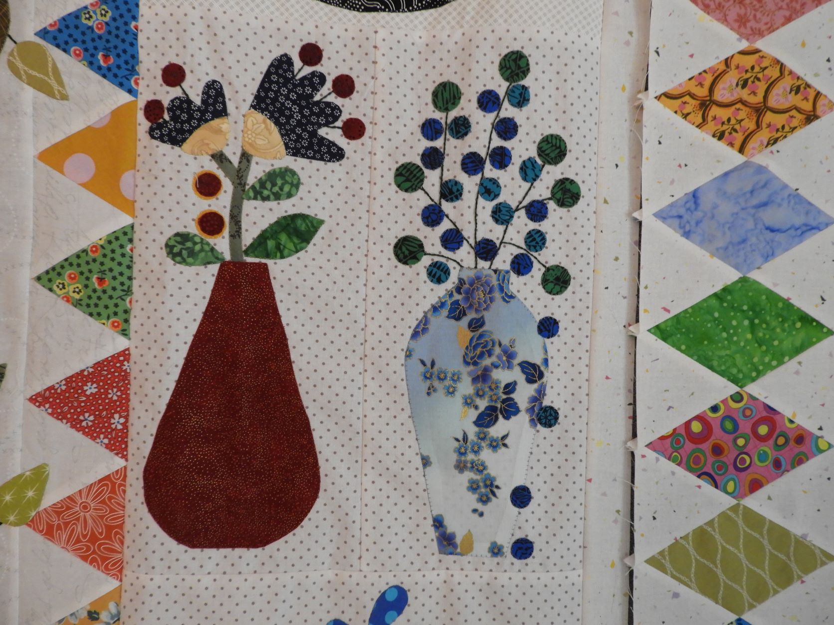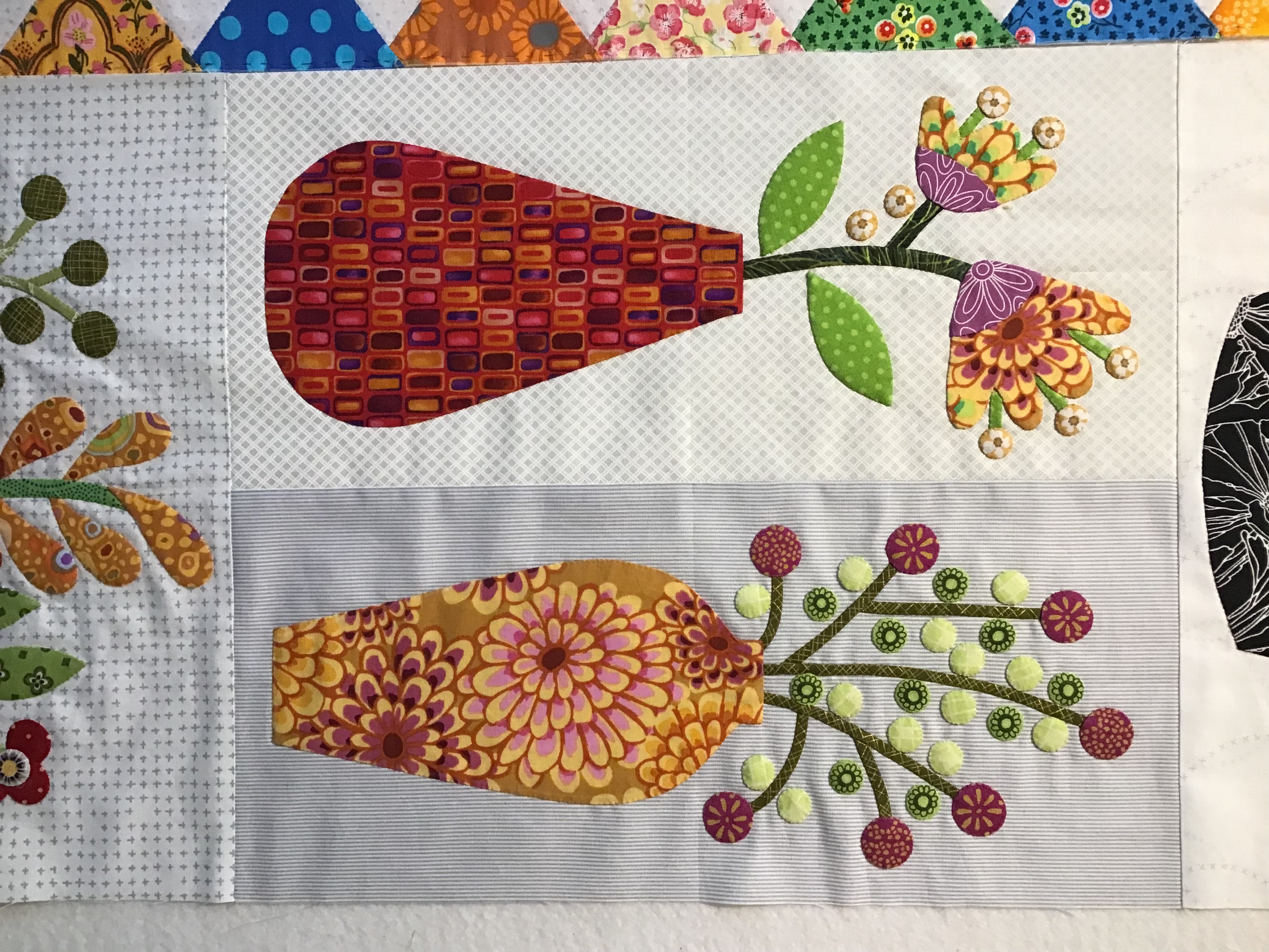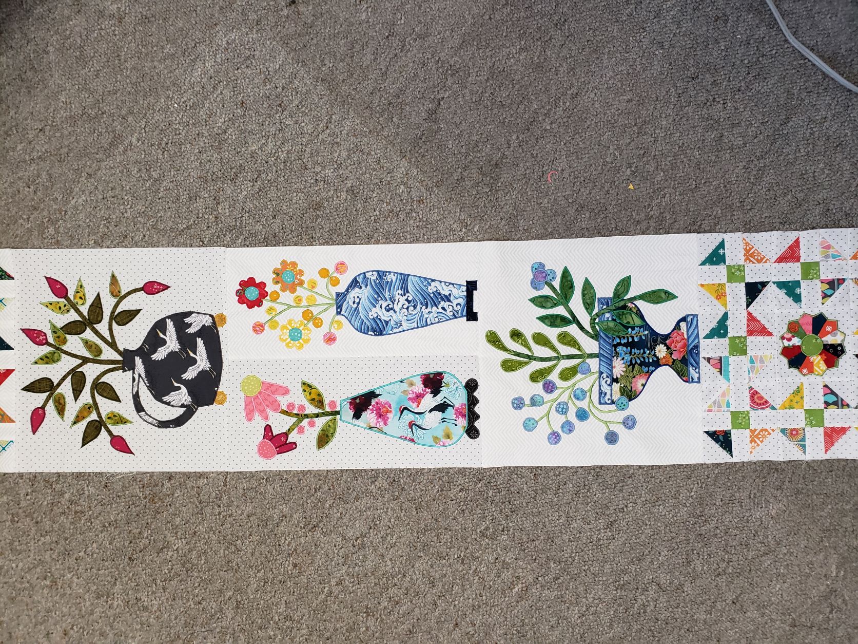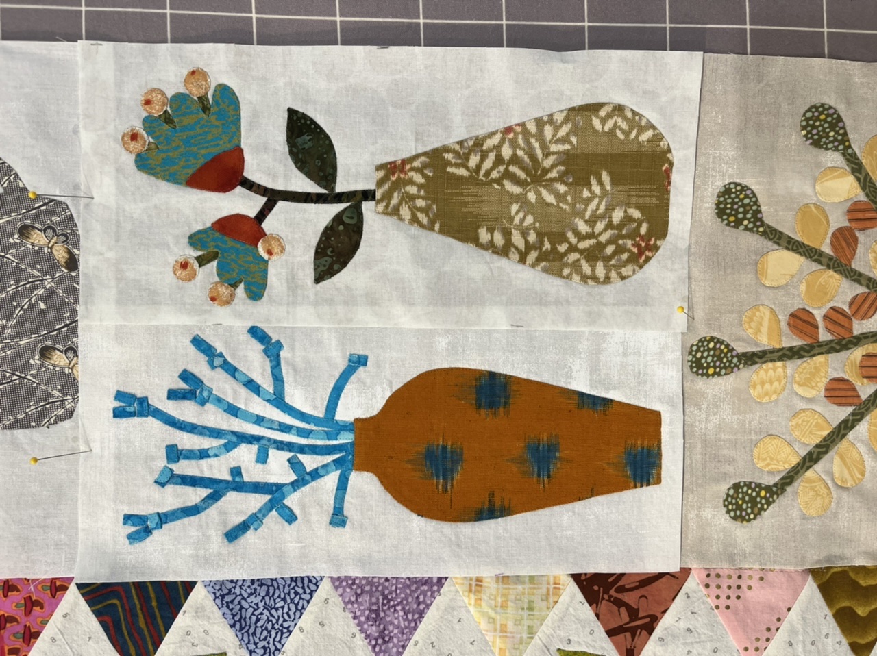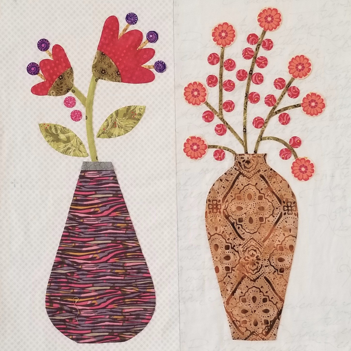 Loved making the little vases. And so happy to see progress. On the photo that we received for this month's blocks, it looked like Irene Blanck did not add the 1/8 inch stem above the flower petals. So I decided to leave them off as well.Last edited by Connie H.; 10-05-2022, 02:20 PM.
