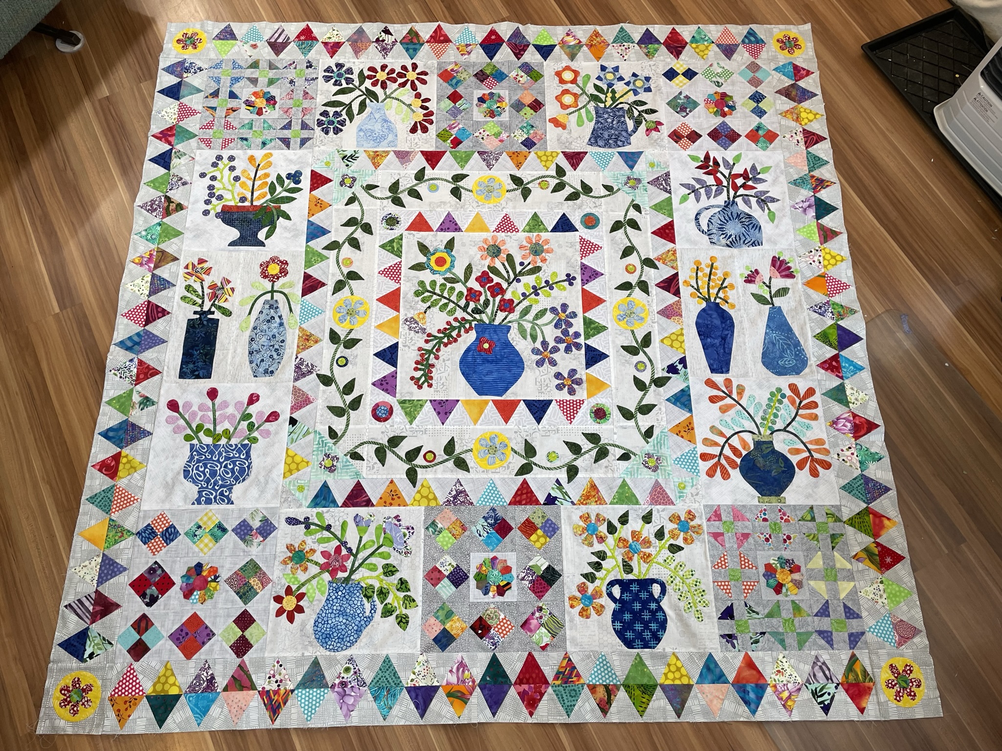 Well, here it is, the end of 2022, and I finally have finished my 2021 BOM quilt! I apologize that the photo is not centered....