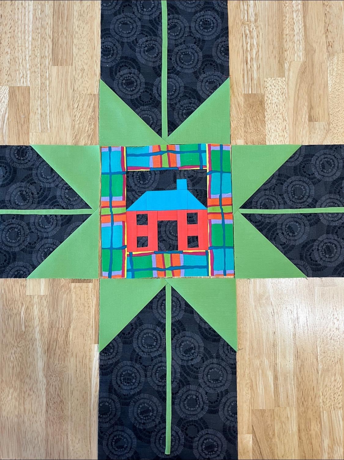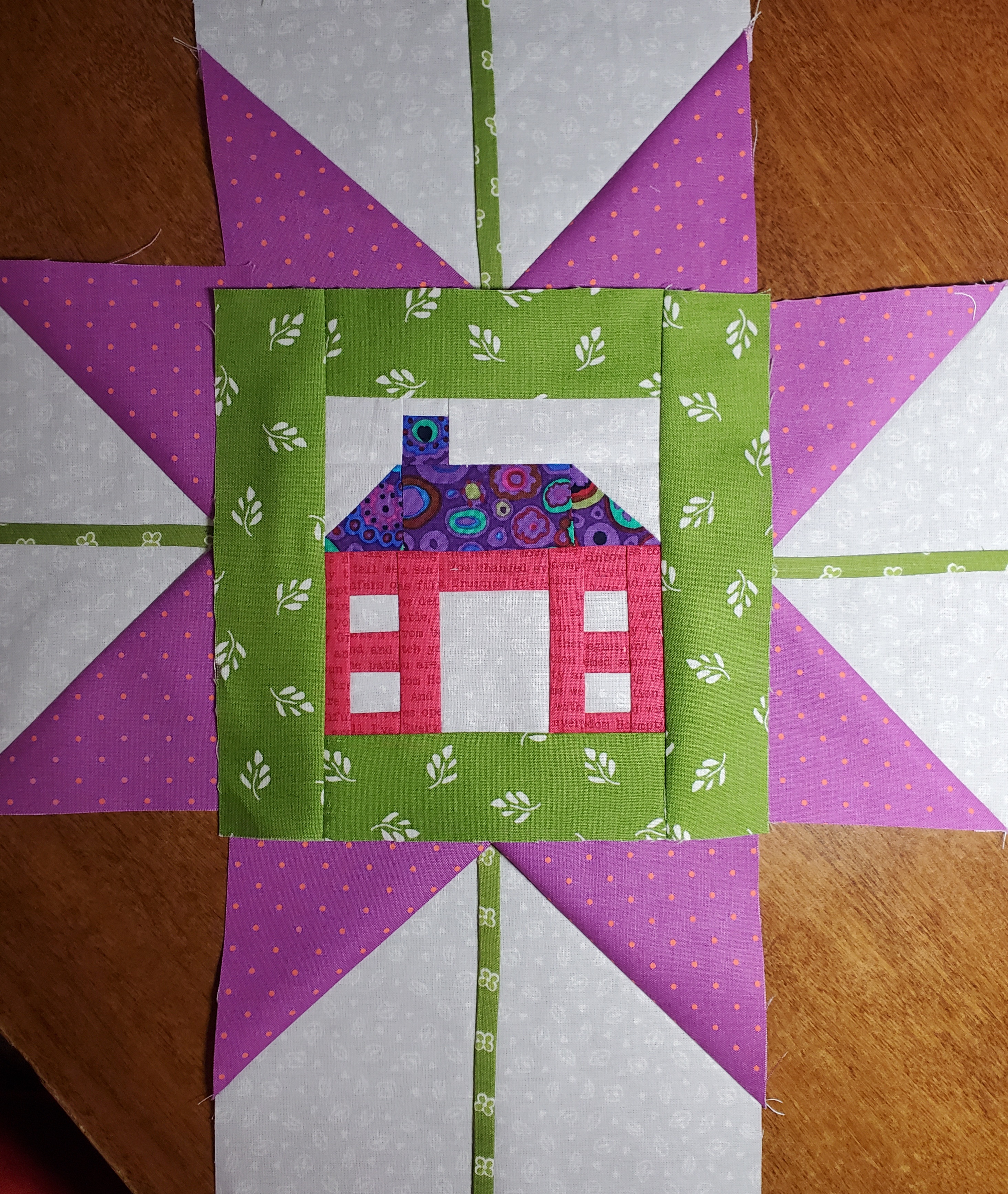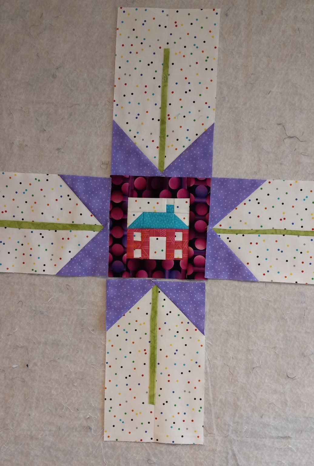 Only because I preferred also an appliqued house in the middle I didn't sew the original one.Quilting forever, Housework whenever!