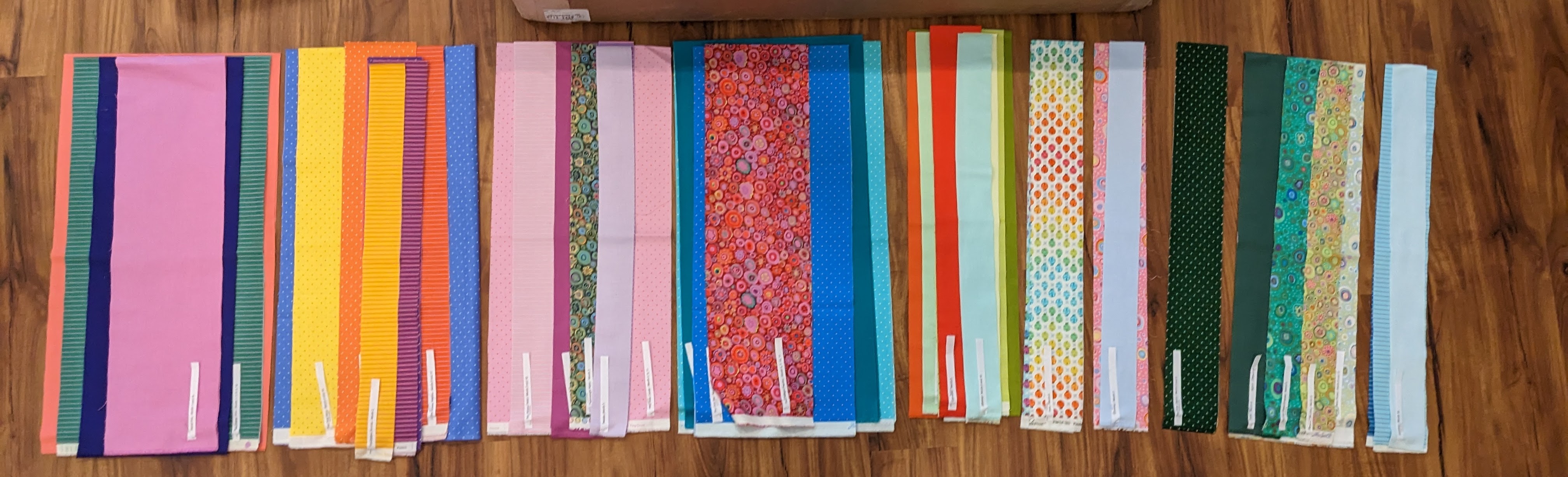 Here are my fabric selections for the Aromatic Rings block from Rainbow Quilts for Scrap Lovers by Judy Gauthier