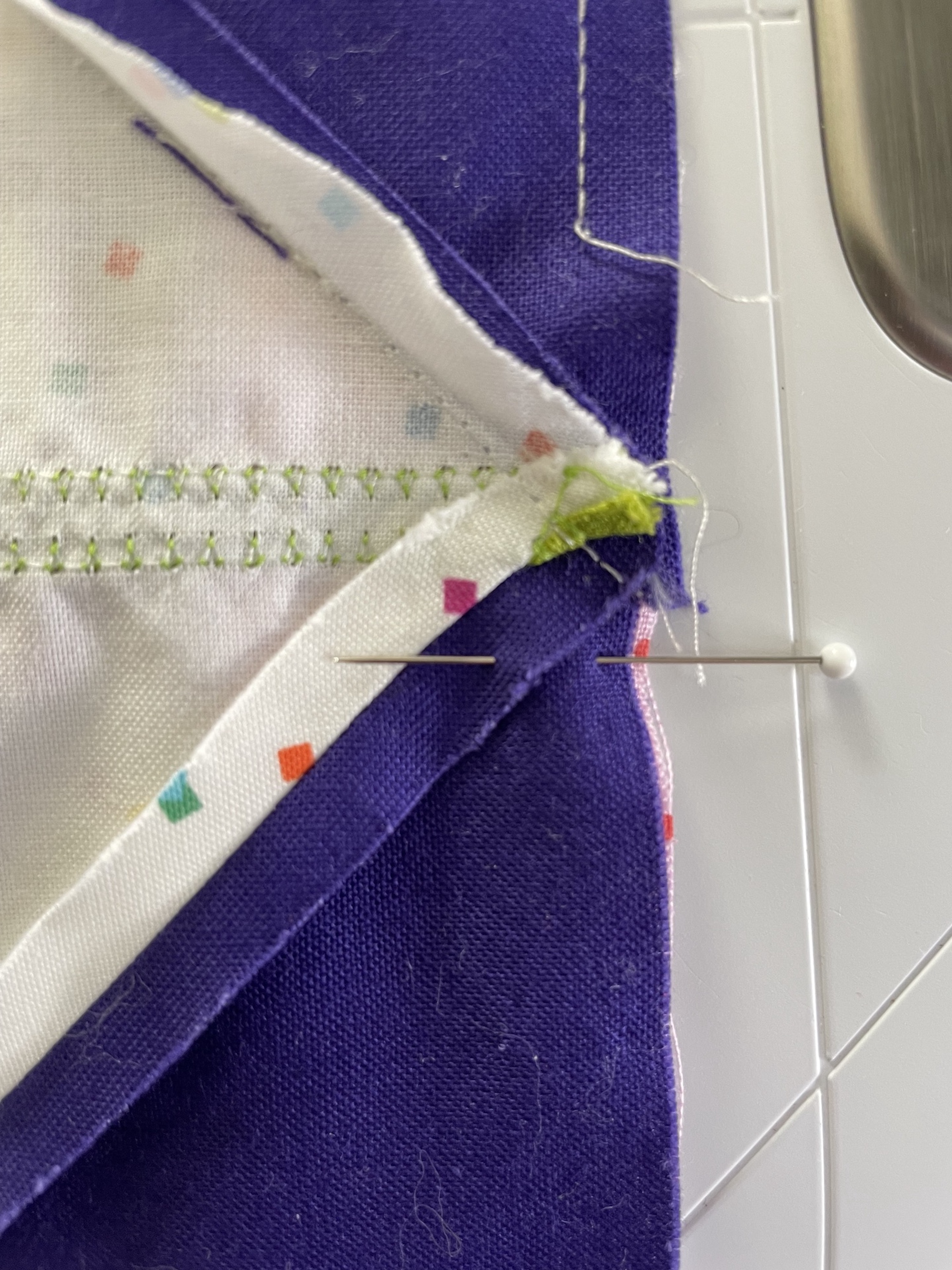 Here are photos--with seam to one side and from front so you can see the intersection that I cannot sew through. I have tried to sew with seam open and pressed to one side and cannot get the foot over the bulk of the stem. I used the Clover stem maker for 1/4 inch. If I sew below the intersection to avoid going through the stem, the seam allowance is way off. I am not sure the photos are working. Will try again if not.