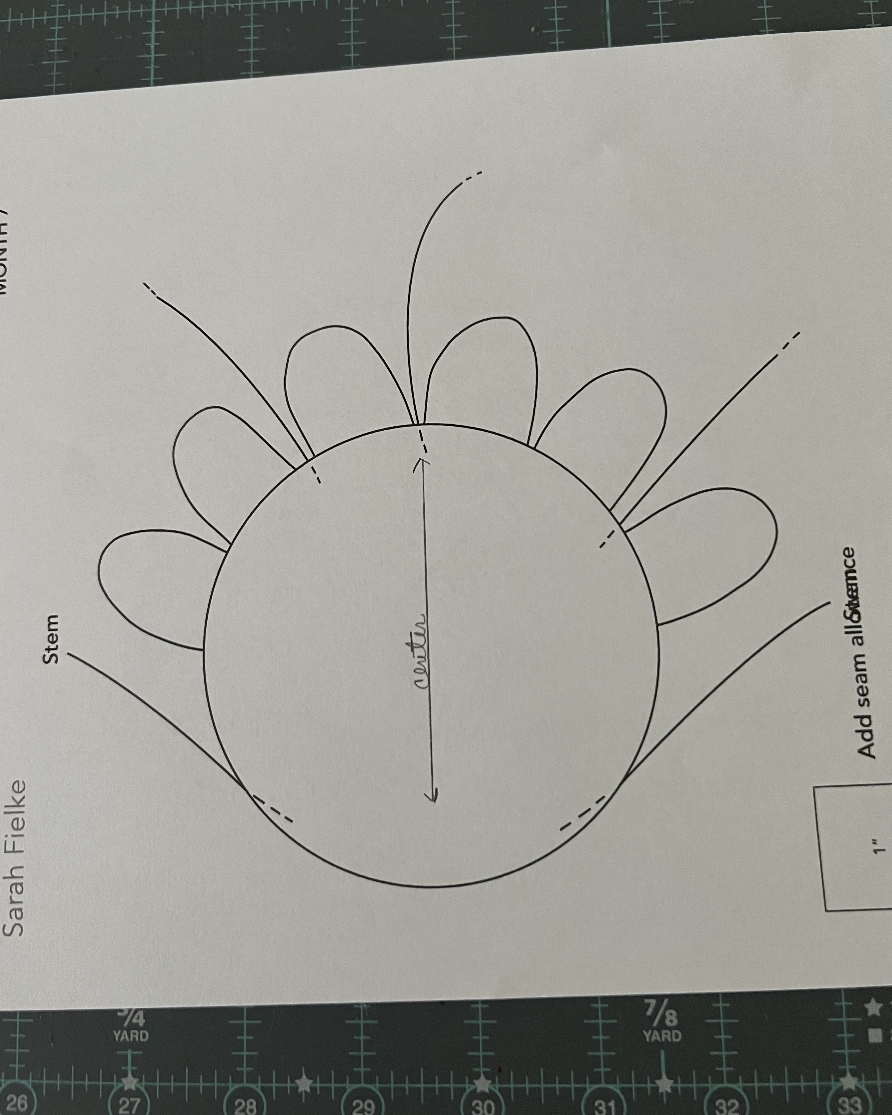 Originally posted by LizAnderson View PostBarbara…..I need some clarification on vertical placement of circle. I know it’s not centered on our piece… but not sure where the virtual center would be? Someone mentioned 1 3/4 up…. Would that be from the bottom of the circle in relationship to the fabric. I’ve cut my fabric larger than 8.5… so I’d like to place the center of the circle higher than the center of the fabric…. I wish that notation would be on that pattern page. I truly appreciate all your insight and preparation for us!!
