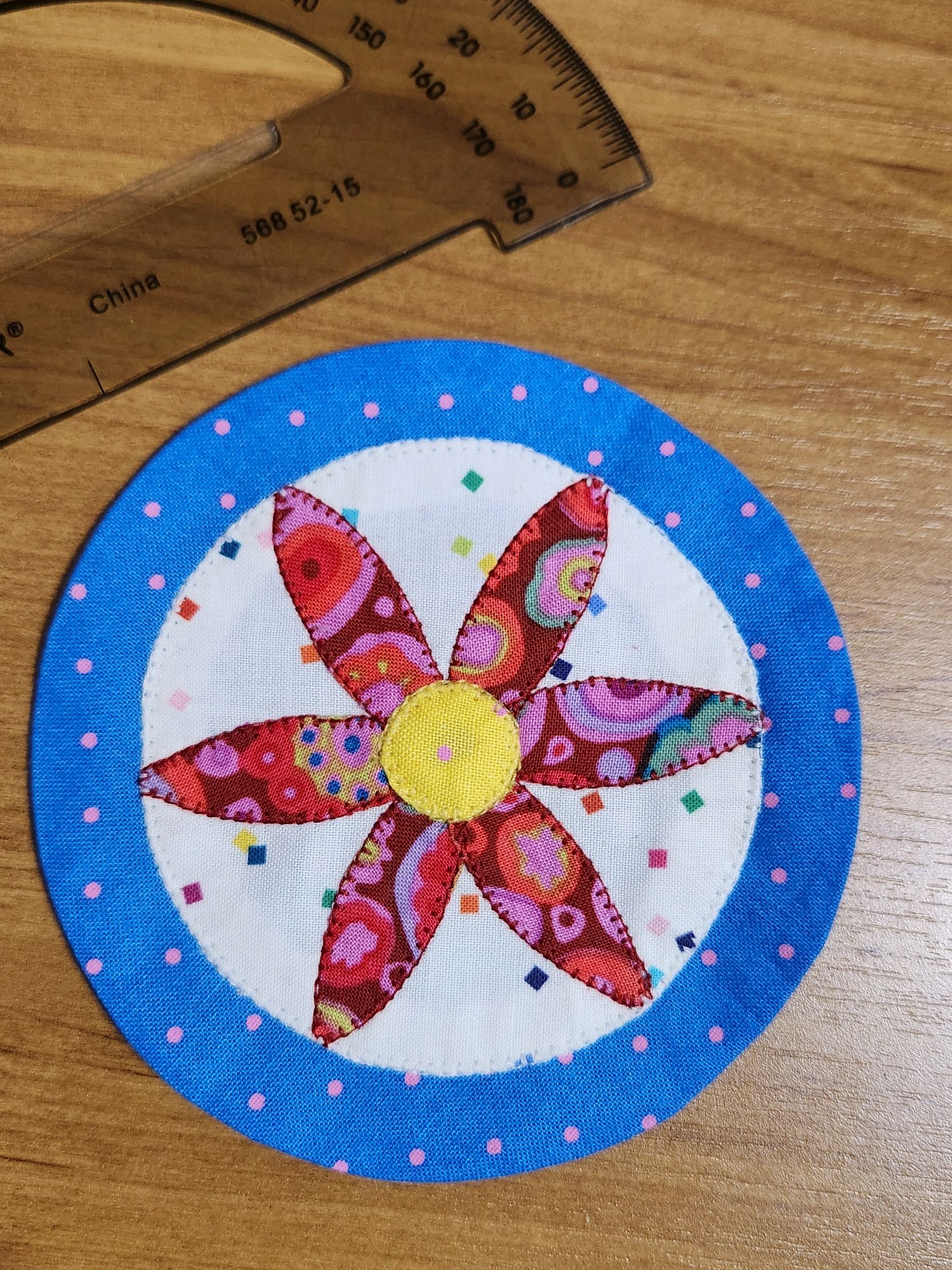 Another day….another question. I’m using Print and fuse for my appliqué. I cut out the medium circle from the large….. I’m thinking about appliquéing a ring then adding the petals to the background. I am worried that’s a lot of fabric with the circle … did you cut any away. You didn’t mention it. Just wondered what you might think. Have a good weekend!Elizabeth Anderson