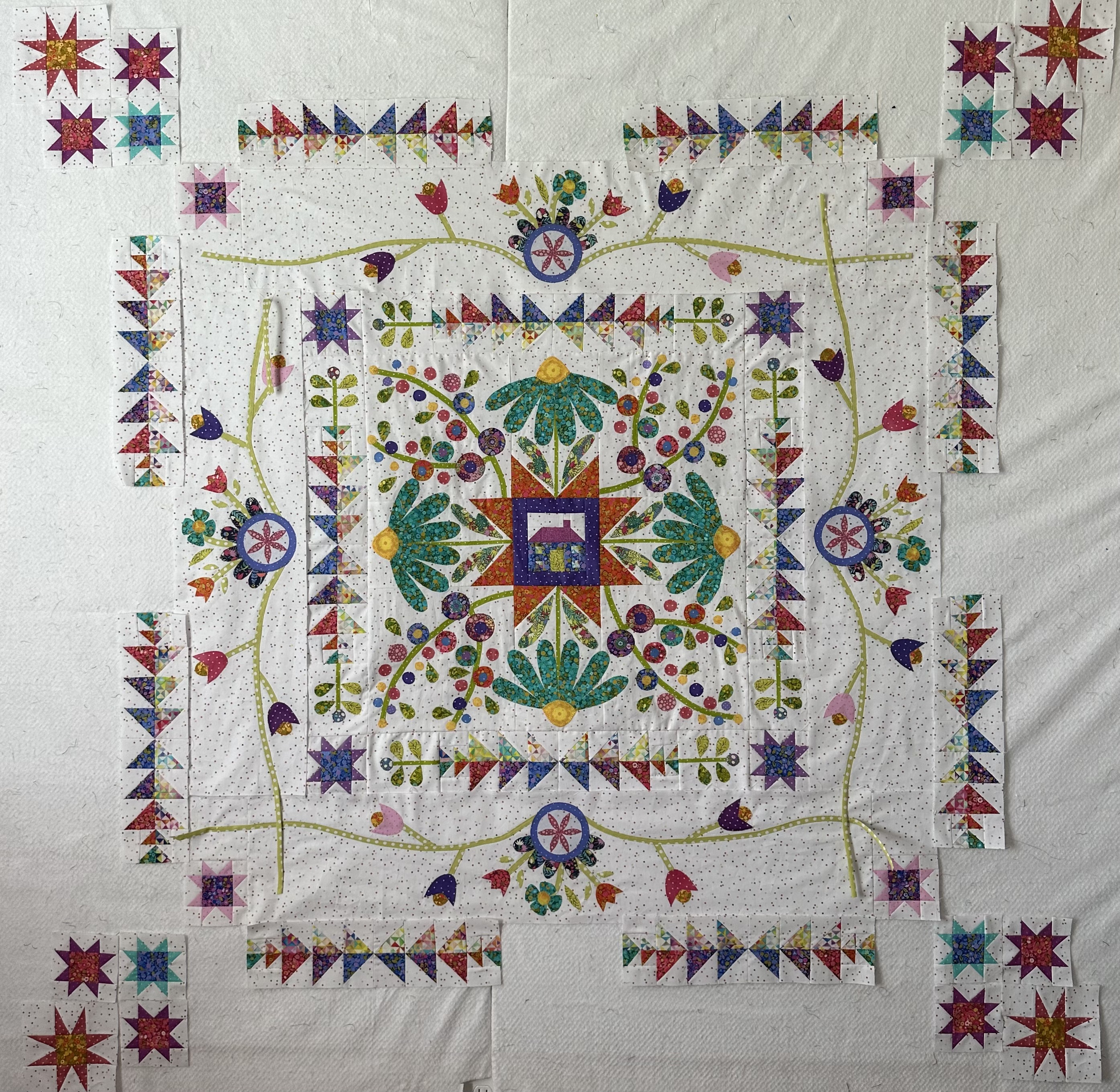 . This is a wonderful quilt. I am so happy to make it! But my design wall is too small for this quilt