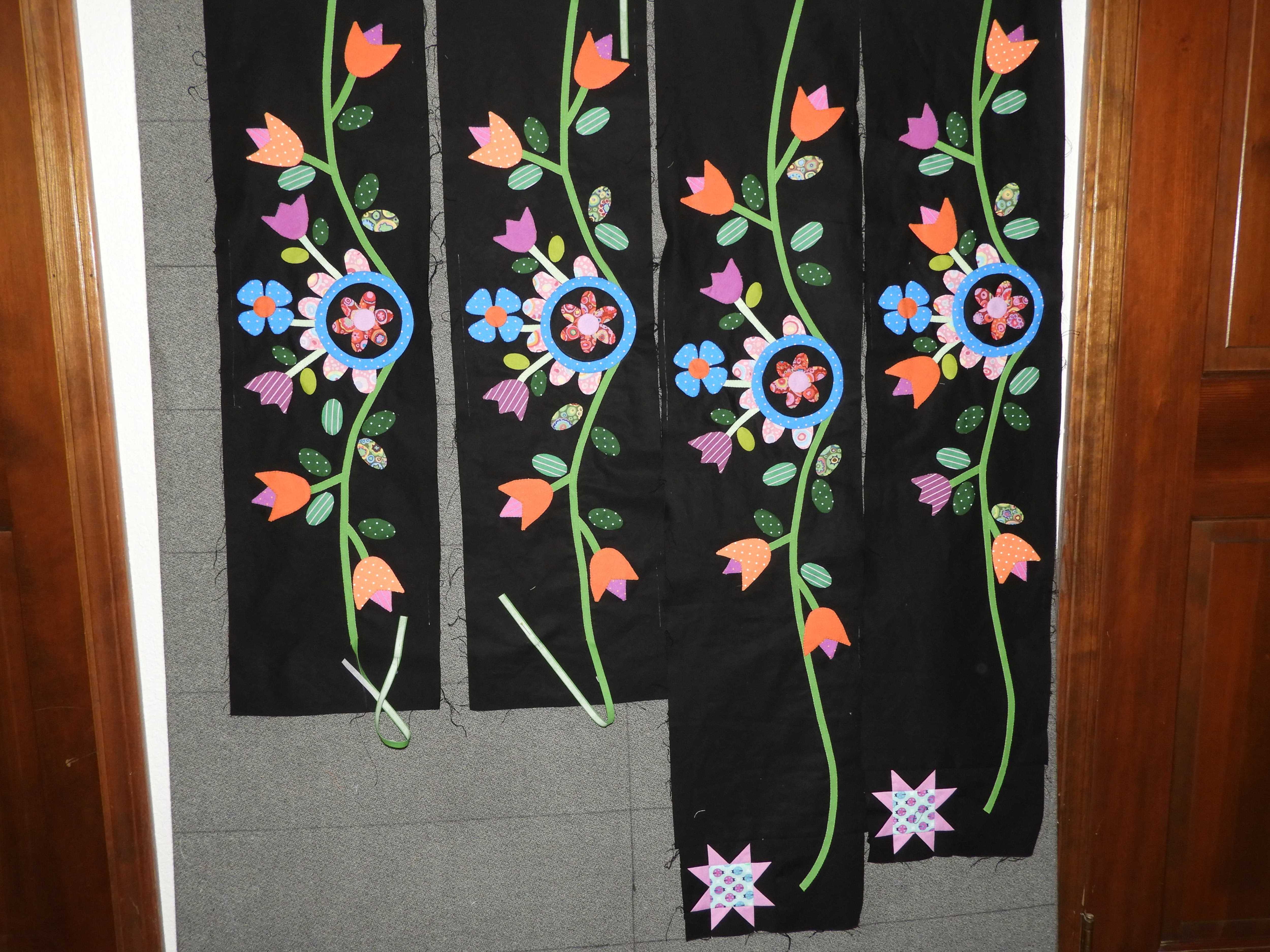 Alison Glass Eleaganza size 8 pearl cotton and DMC 6 strand for my twisted thread edge stitching on the applique. I was thinking about just