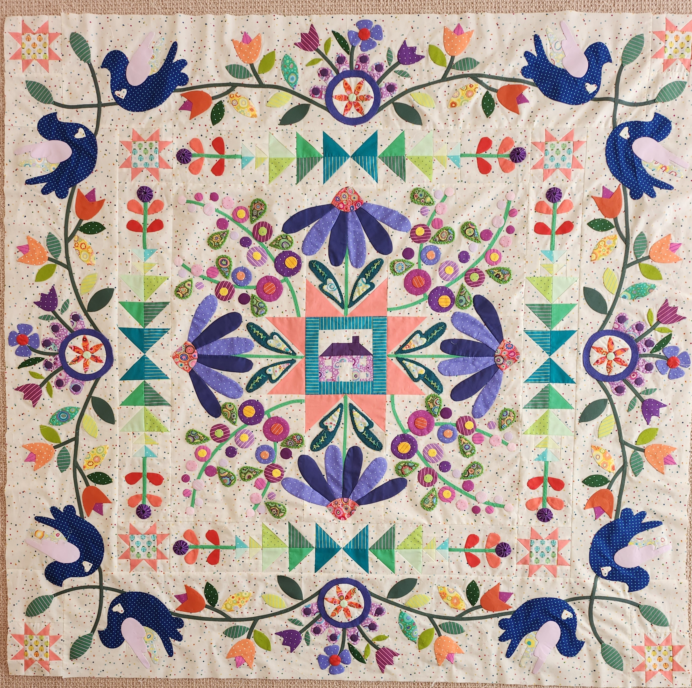 Alice, Your color selections beautiful, and your red head bird is darling and fits perfectly with the rest of the quilt.Originally posted by acwang View PostMonth 9 is finally done! I changed the bird to the kind I like, interesting process but lots of fun