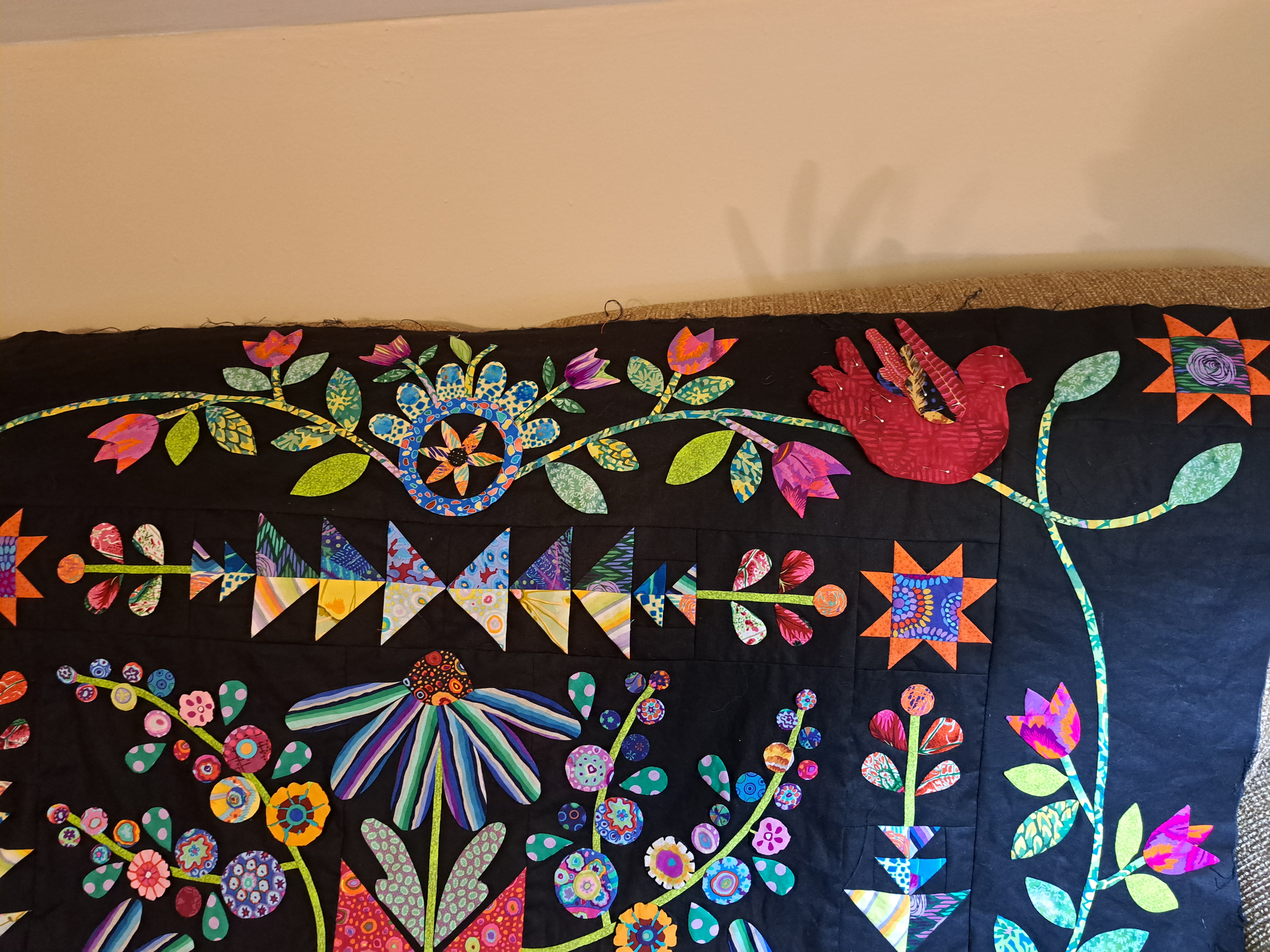 I’m new to appliqué, tried needle turned appliqué several times but couldn’t get it to look good. This is all turned-edge machine appliqué after reading Barbara’s blog and watching Alex’s video, they are super helpful.