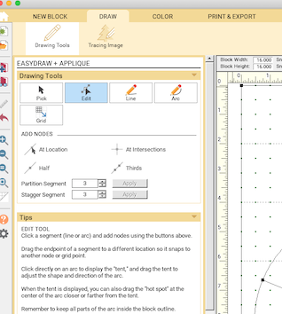 partitions feature with the arc feature. It was not an easy block to draft. I tried doing a 8 inch 1/4 section but had trouble with