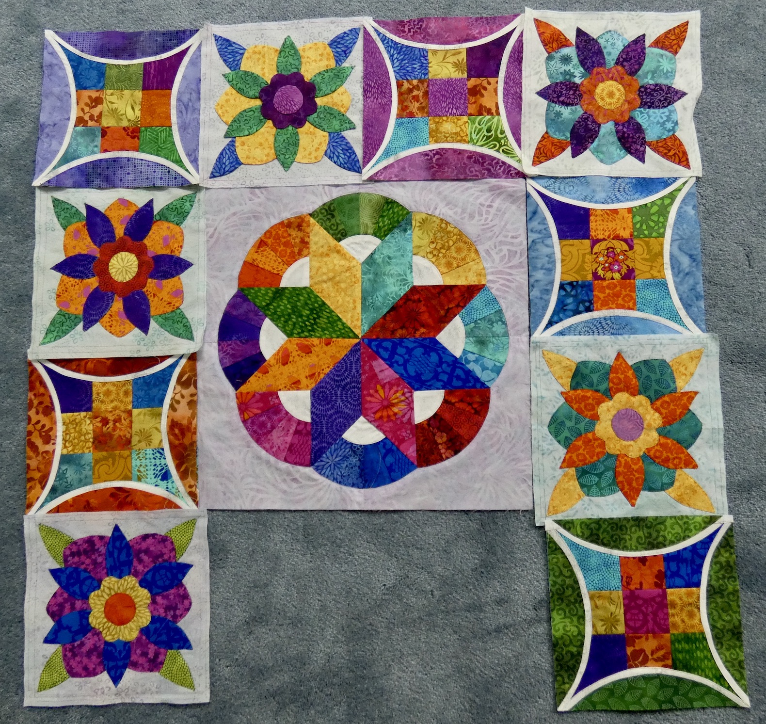 Decided to go with my modified flower block instead of the one we will learn next month. It is fun