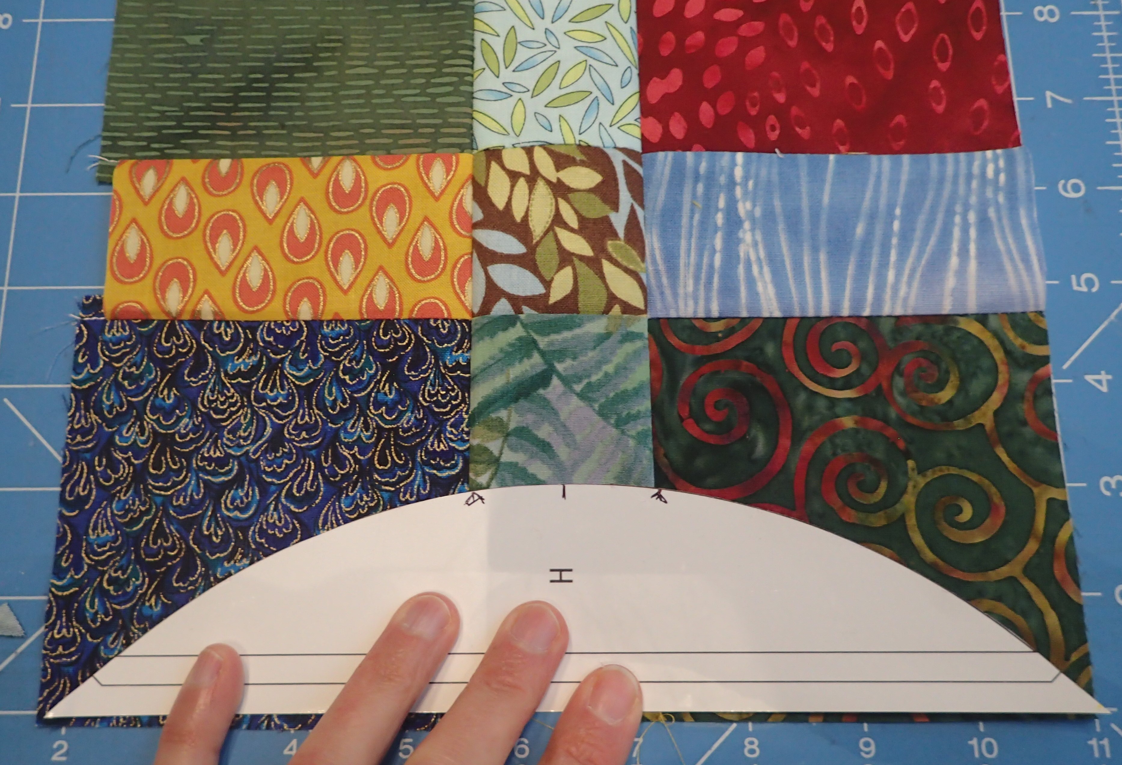 - Using the templates, mark the placement of the crescent on the 9 patch using disappearing ink marker or chalk.