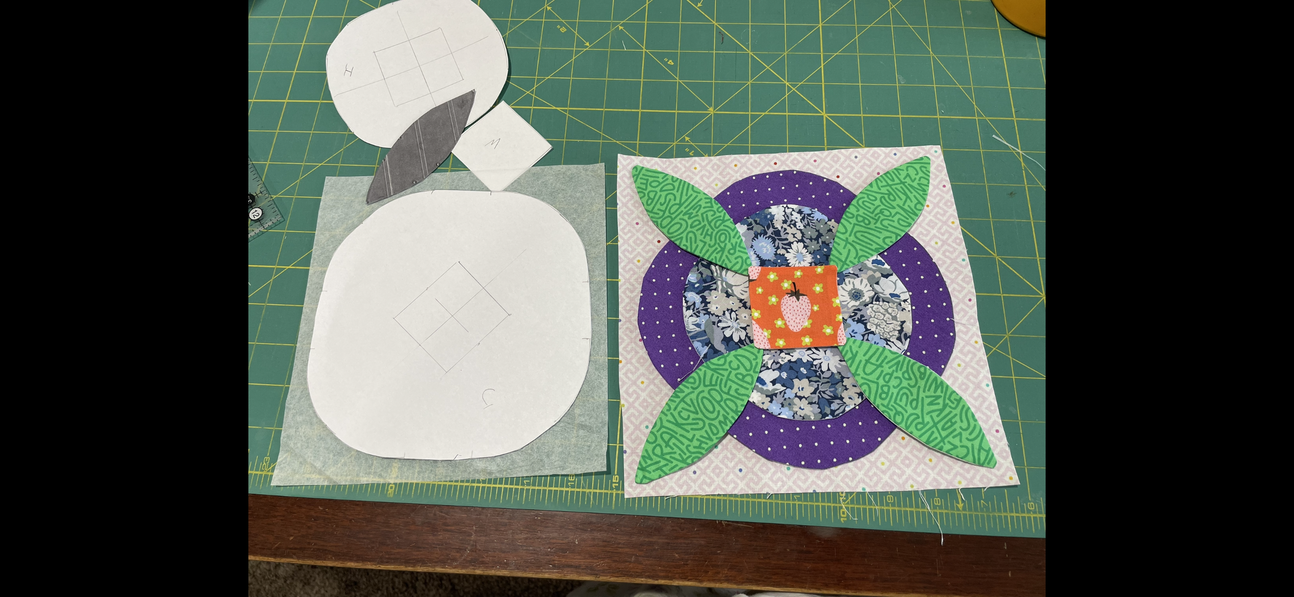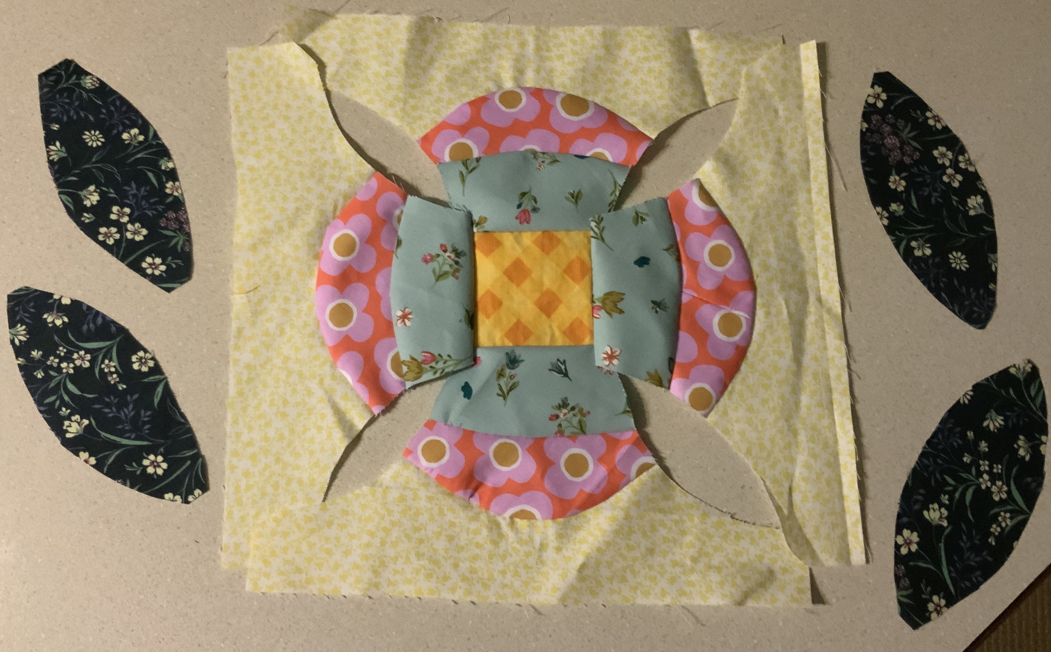 I think I have figured out an alternative to the Month 3 block. I drew and made templates and then used Lori Holt’s appliqué method that uses sew in interfacing. I am happy with this mock up. Now to decide if I will hand stitch down or machine appliqué. It will use more fabric and I plan on adding more from my stash if needed. I will also cut out the backs to reduce weight.