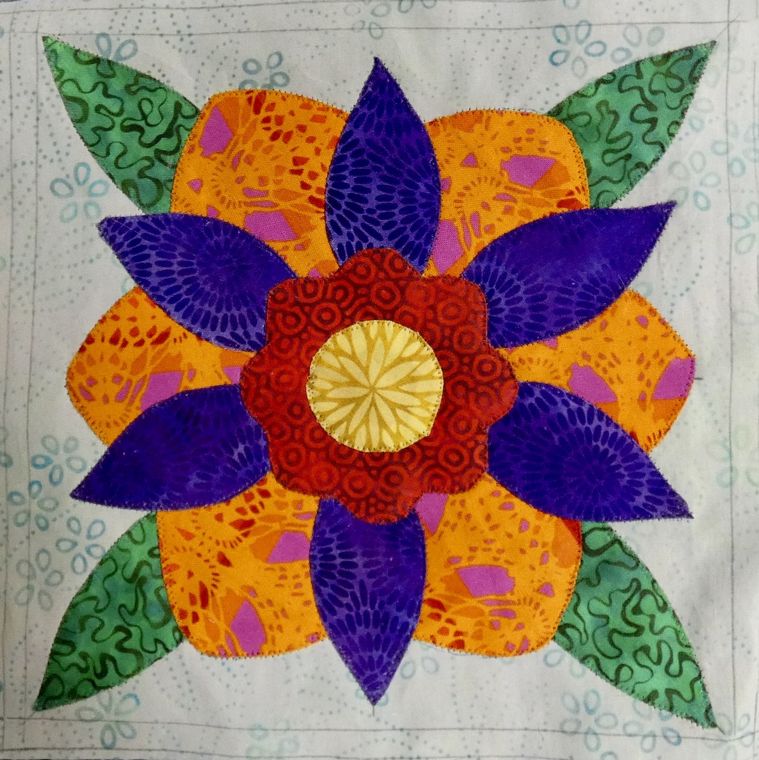 I stitched the centre panel, square, 2 curved pieces and outer pieces. Then stitched side pieces, 2 curved pieces and outer piece. I put the petals on each side of the side pieces then stitched each side pieces to the centre piece in a long continuous curve.Last edited by Sheridan D.; 03-07-2024, 12:48 AM.