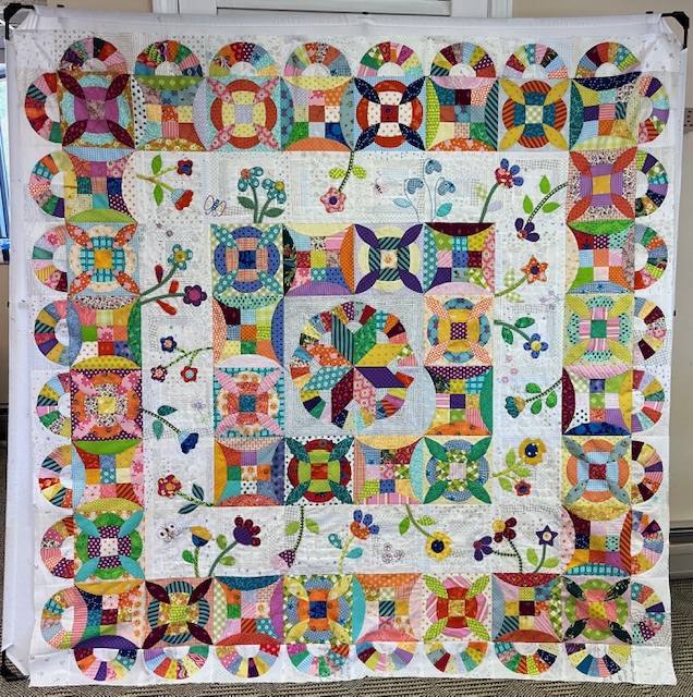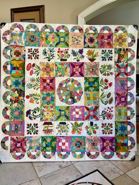 Went to a quilt retreat this past weekend with all my parts and top is DONE!! I love to do turned appliqué but didn't want to deal with those tiny pieces in the kit so used some pattern shapes from Garden Party Down Under (BOM 2022) and another Jen Kingwell quilt. Used Pick A Petal style but bigger florals. Love it. It was a huge hit at the retreat. I still have to quilt Garden Party so Pick will just hang around a bit before the final push to complete. Definitely staying in my home, not a gift!!