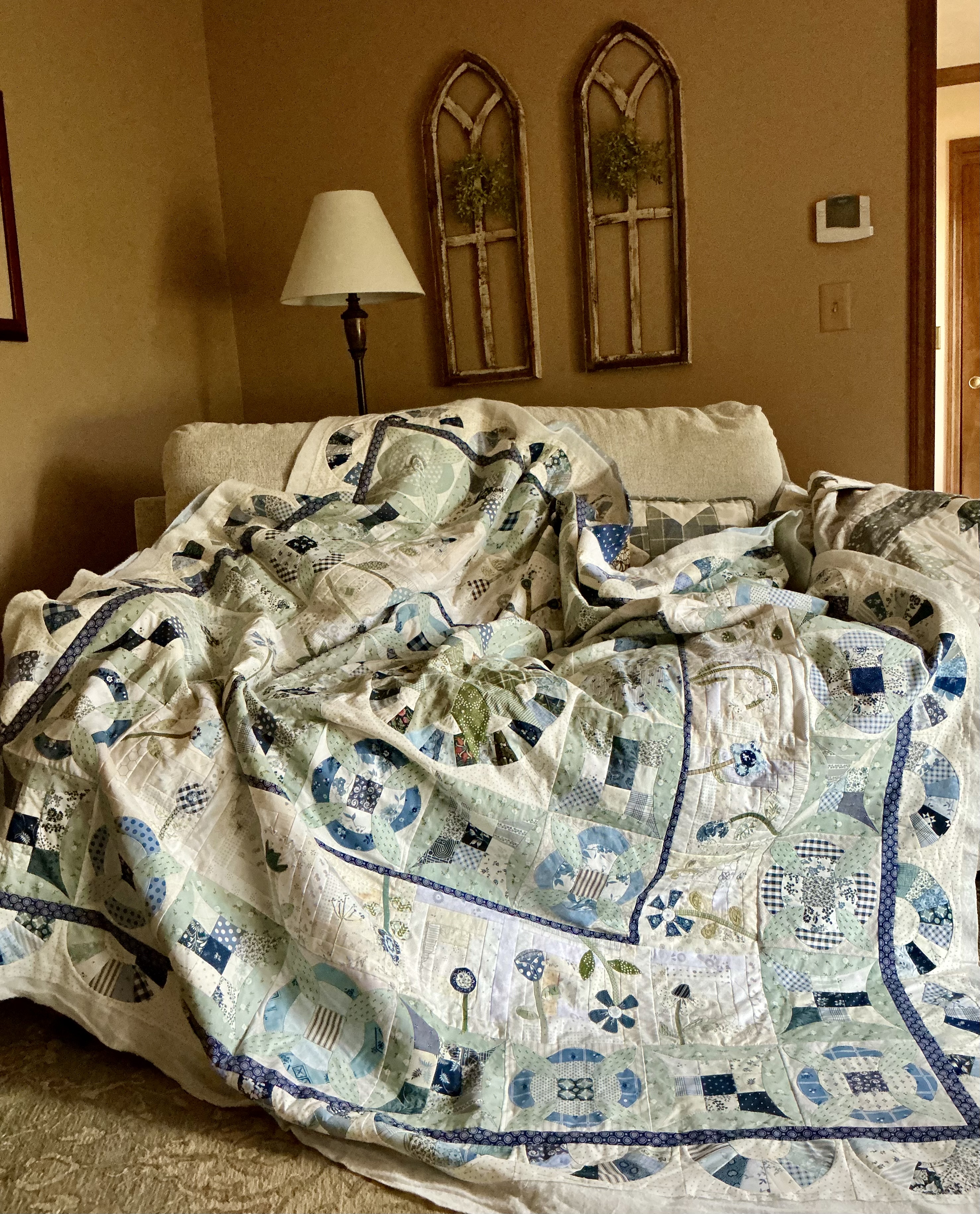 Well, here it is, the end of 2022, and I finally have finished my 2021 BOM quilt! I apologize that the photo is not centered....