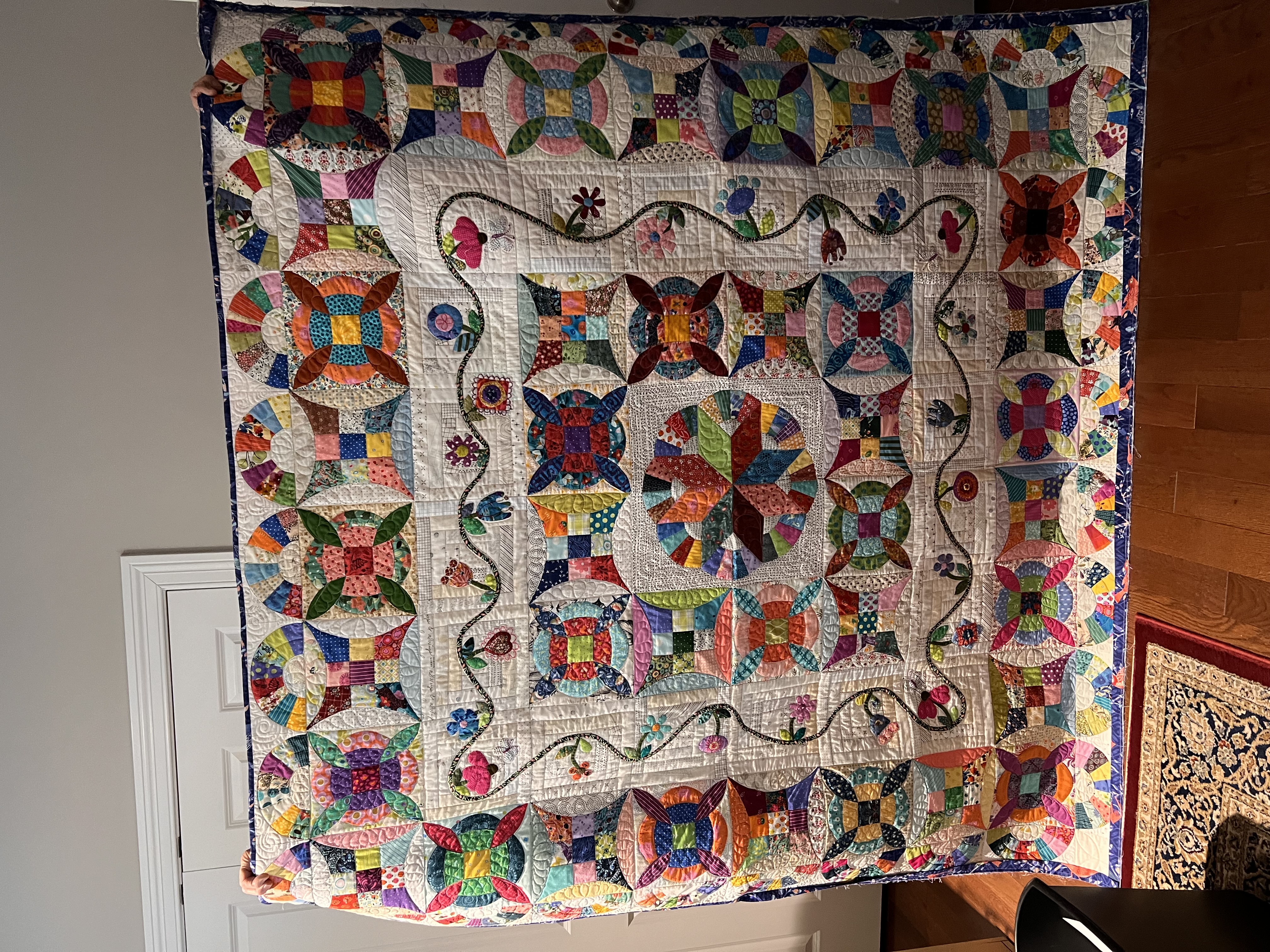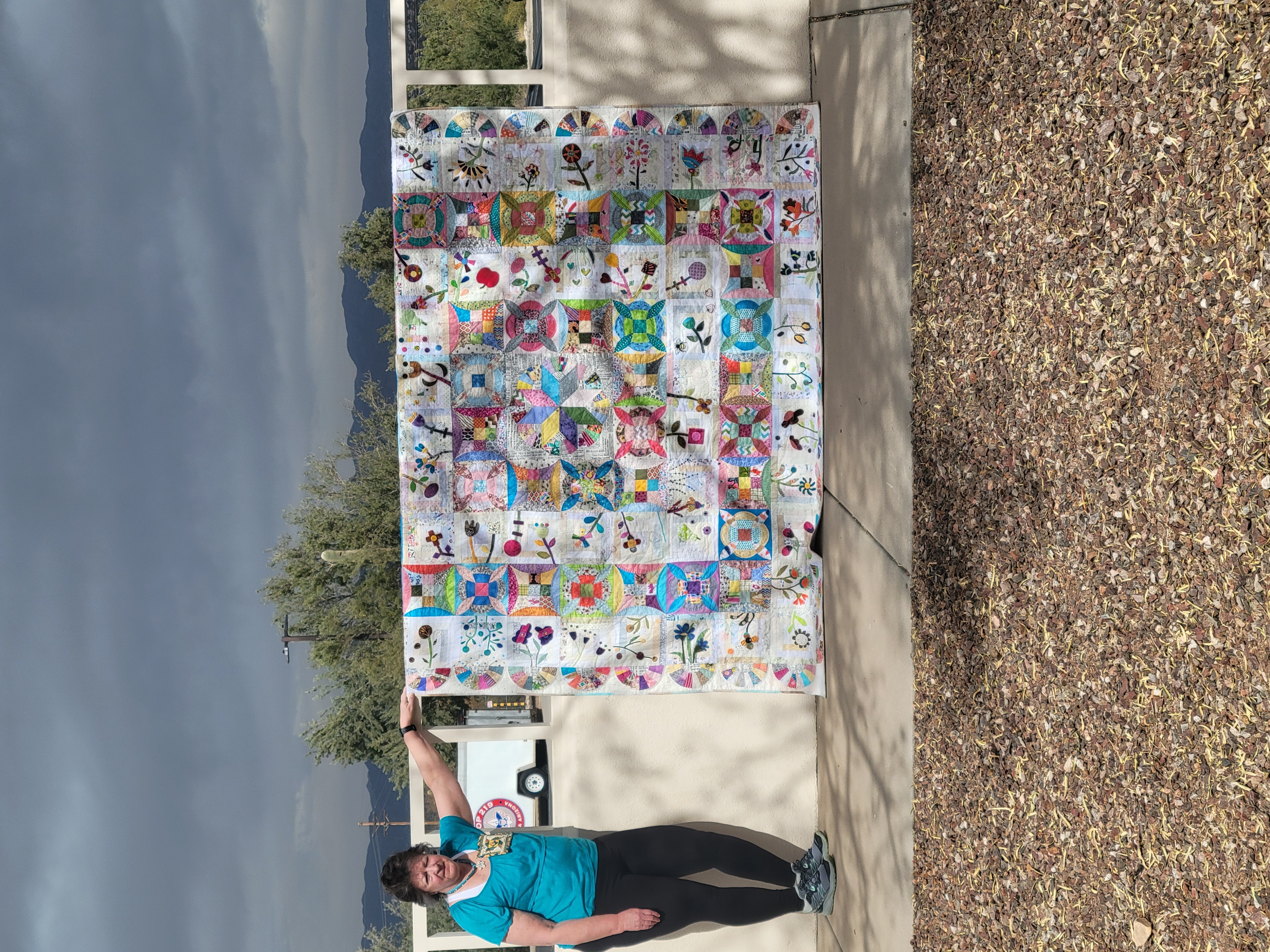 Well, here it is, the end of 2022, and I finally have finished my 2021 BOM quilt! I apologize that the photo is not centered....