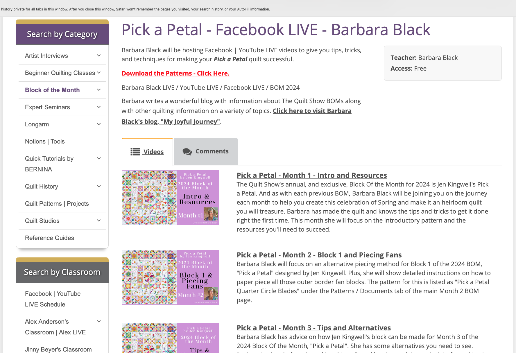 I am BRAND NEW to the Quilt Show and fell in love with this pattern. I downloaded all of the instructions. My concern is......