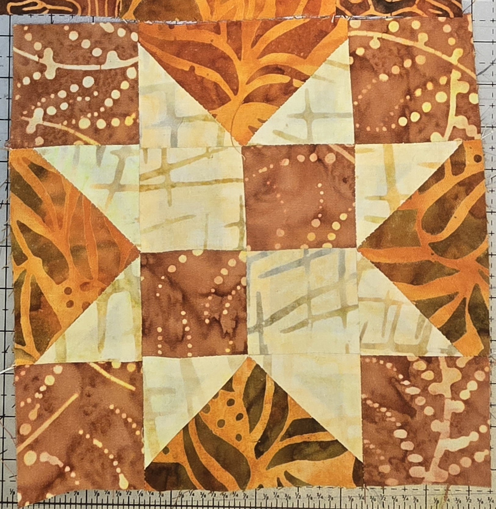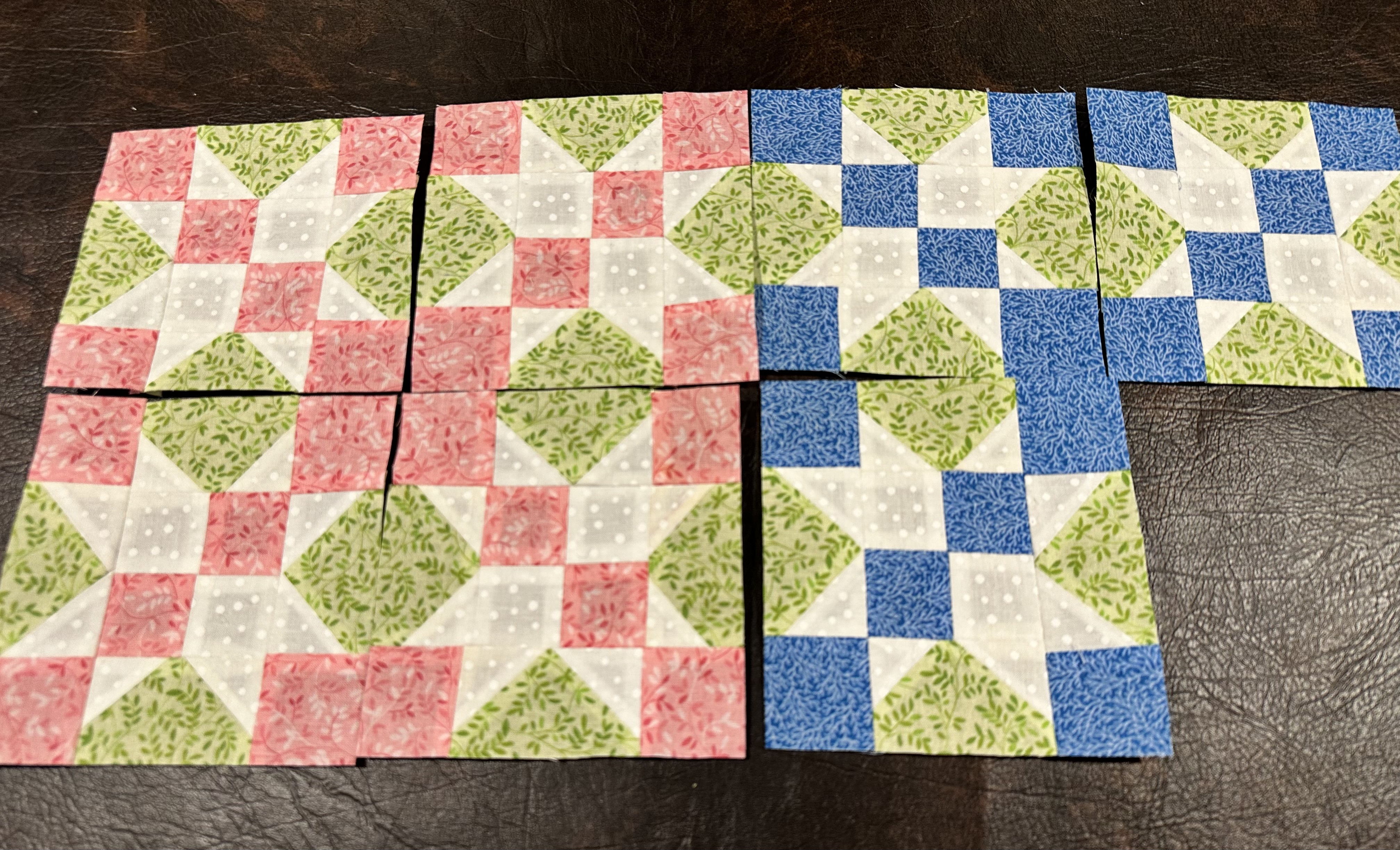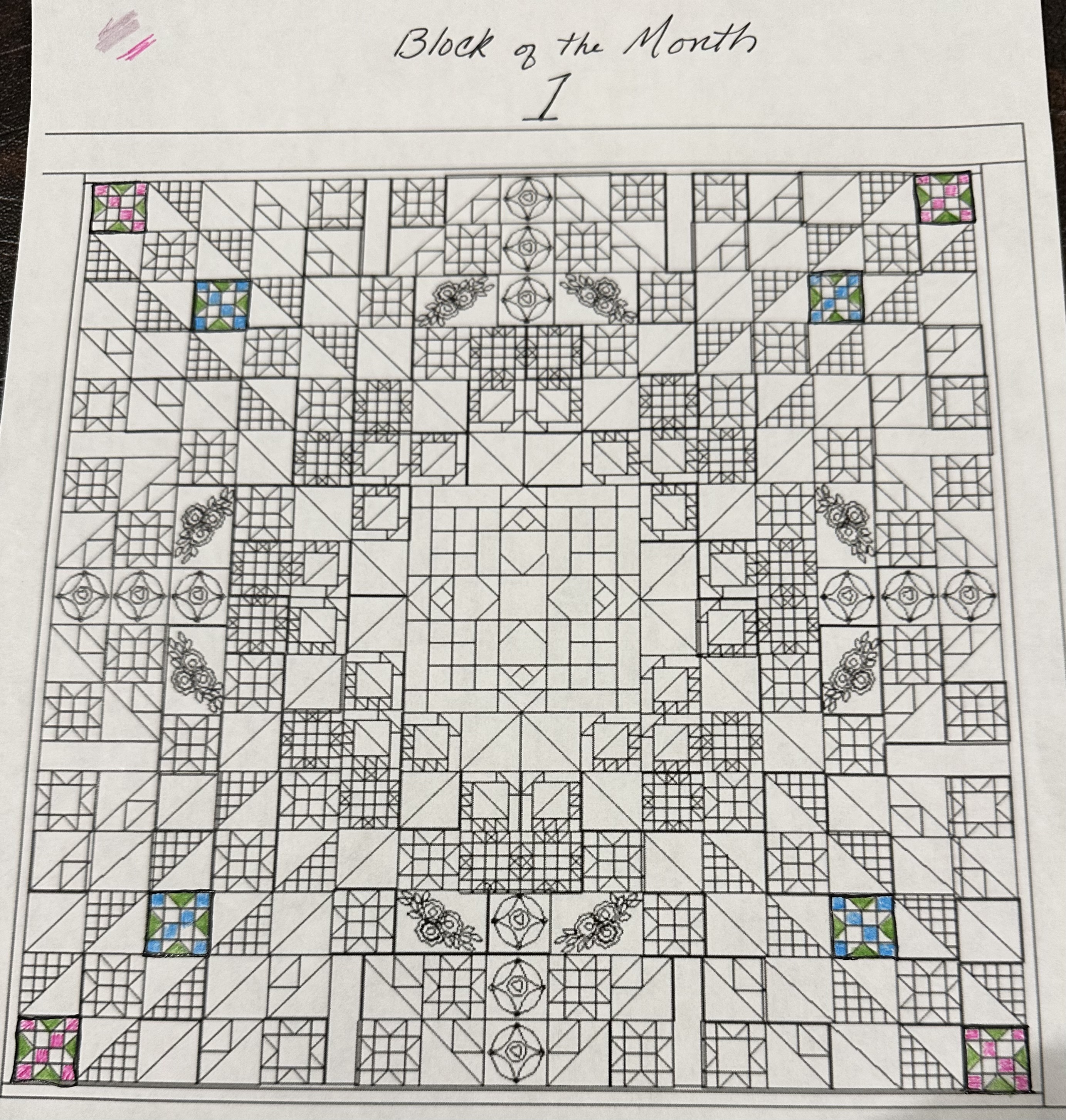 I’m new to quilting and this will be my first non-t-shirt quilt. As my husband and I traveled, I stopped at quilt shops all over and picked out fabrics to complete this quilt- that and the conversations were amazing! I’m going to make these blocks again, but here’s my color scheme. I’ve watched Lynn and Barbara’s videos over so I could figure out why I’m losing the points. I think I know why ( besides having a broken arm). And, it’s silly, but I am just tickled with the coloring page and created one for each month we’ve done so far.Cheryl R