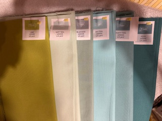Lime Green on left is 1/2 yd and Soft Teal is 1/4 yd next to Lime Green. The Soft Teal does not look like a Teal to me, but do you think these colors are correct? I did receive 25 different colors and white. Most colors I could identify with no problem, but the teals were a challenge for me. Thanks for your help.