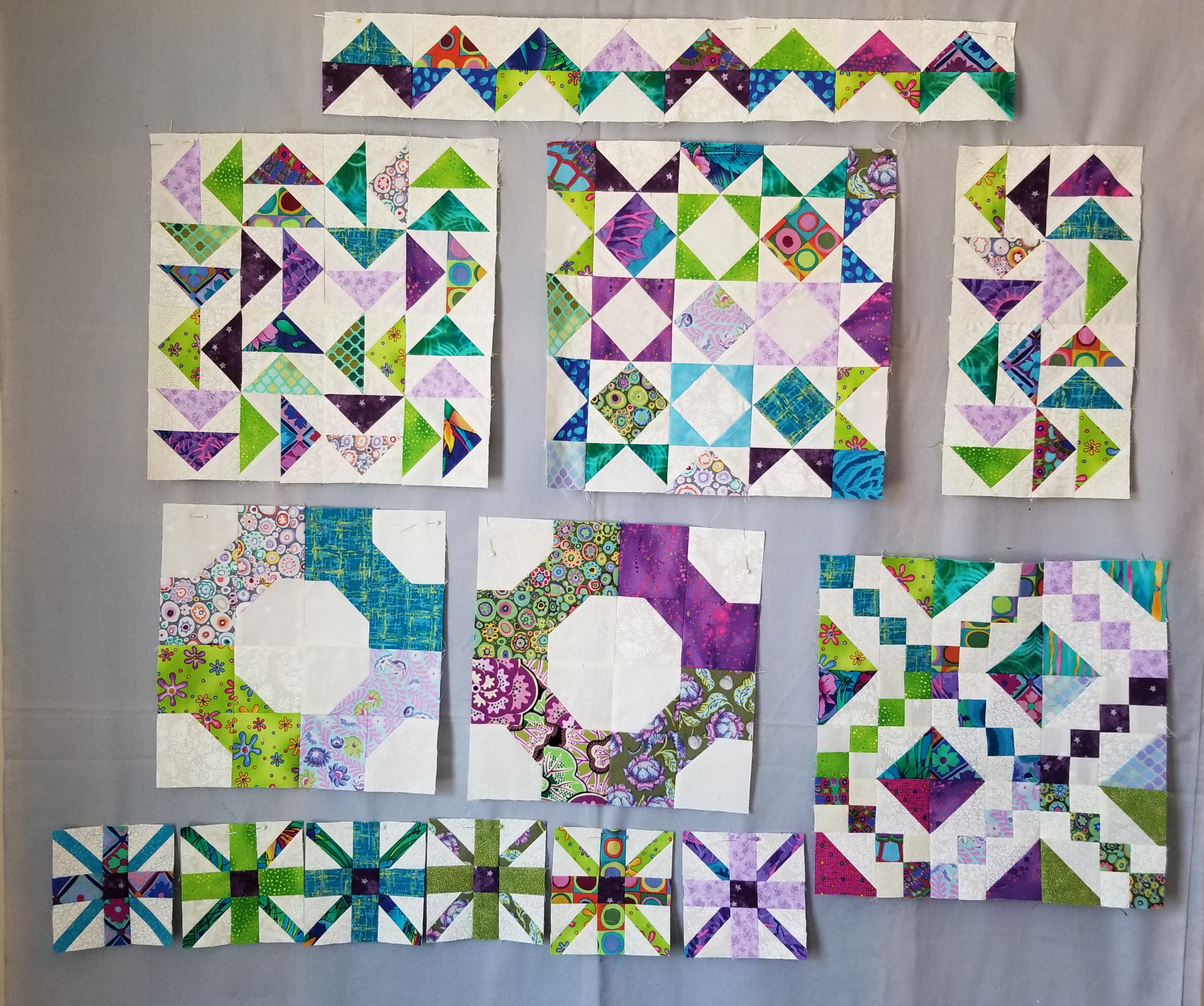 They’re beautiful and show the block patterns so much better than Jen’s, Dee’s, and mine. I which Dee was spending some time discussing the block and color placement to highlight each block instead of repeating instruction each week about the Grid and pressing. I’m an experienced quilter and seeing your blocks makes me realize I need to study the block before choosing fabric. I will be remaking some of my blocks so I’m happier with the result. Thank you for posting your photo!!