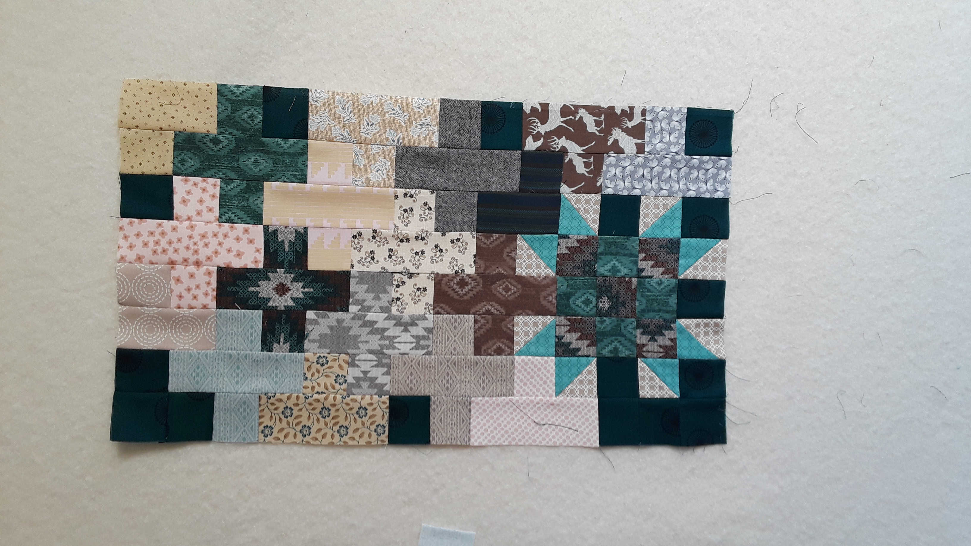 I have been working a head and using Accuquilt to cut a lot of the pieces and EQ8 to print out paper piecing templates for the court house steps. I like Accuquilt because knowing that the cutting is accurate, all I have to worry about is my sewing. They even have a die for the triangle in a square. It is a lot of fun figuring out my way of piecing the blocks, like for the Trip Around the World I did it like a Bargello using only strips. With the isolation of Covid quilting is how I fill my days and I love it.Last edited by karonray; 03-13-2021, 09:15 AM.