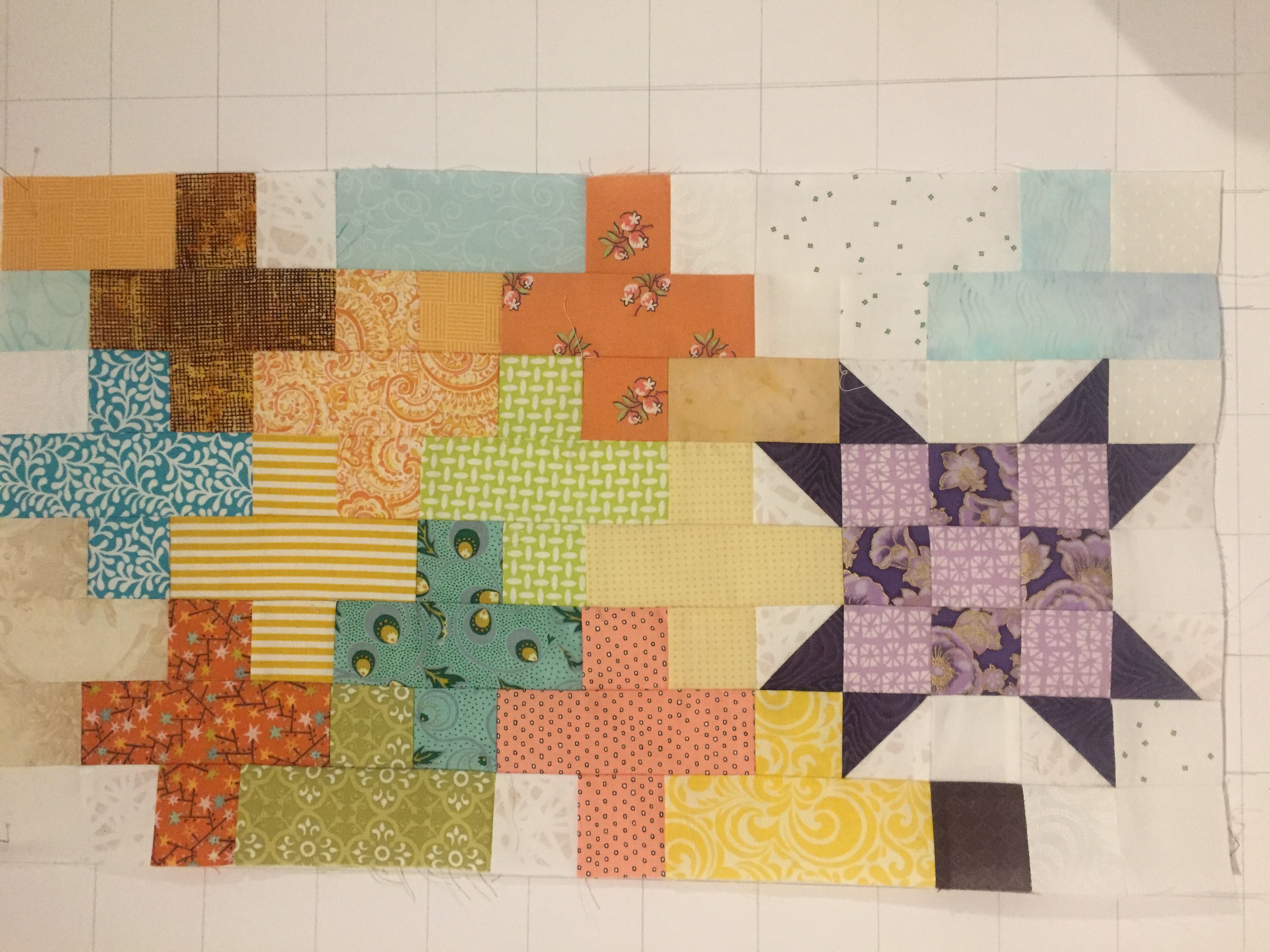 I am using leftover fabric from another quilt because I love the colors. I know I will have to use more colors but this...