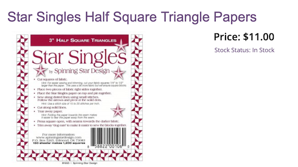 Also, The Quilt Show store sells Star Singles. They make very accurate half square triangles. You sew on the paper lines.