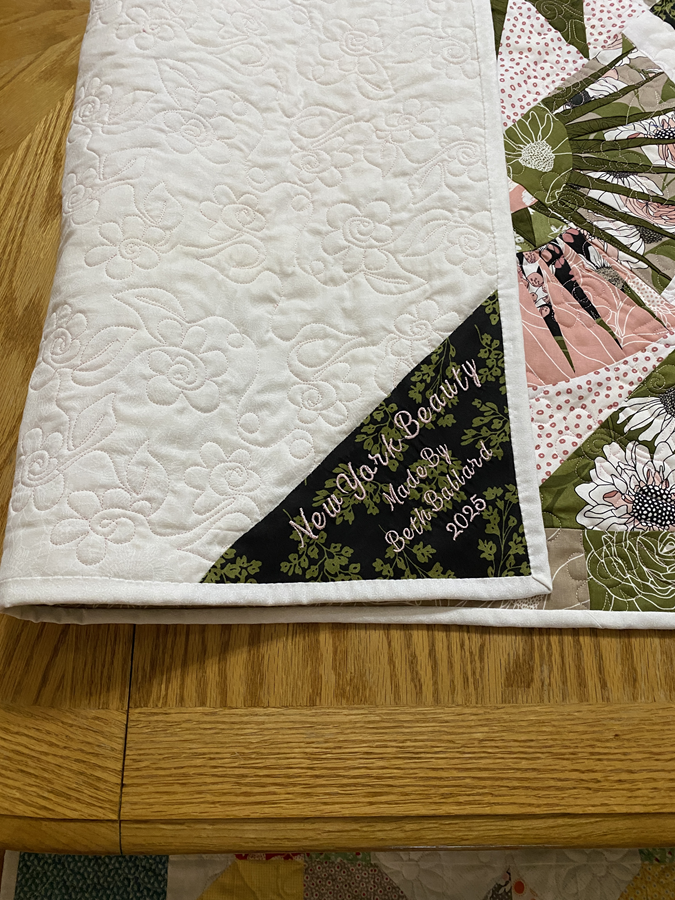I have truly enjoyed every stitch of this class... I've foundation paper pieced a few times over the years... I always wanted to try te New York Beauty and so this class was perfect! the fabric I used is called Botany and it's from K Designs for Moda... I got a fat quarter bundle and had enough fabric to make two New York Beauty Quilts...I added a two inch border to mine..I quilted my quilt with roses, vines and leaves from an edge to edge design...