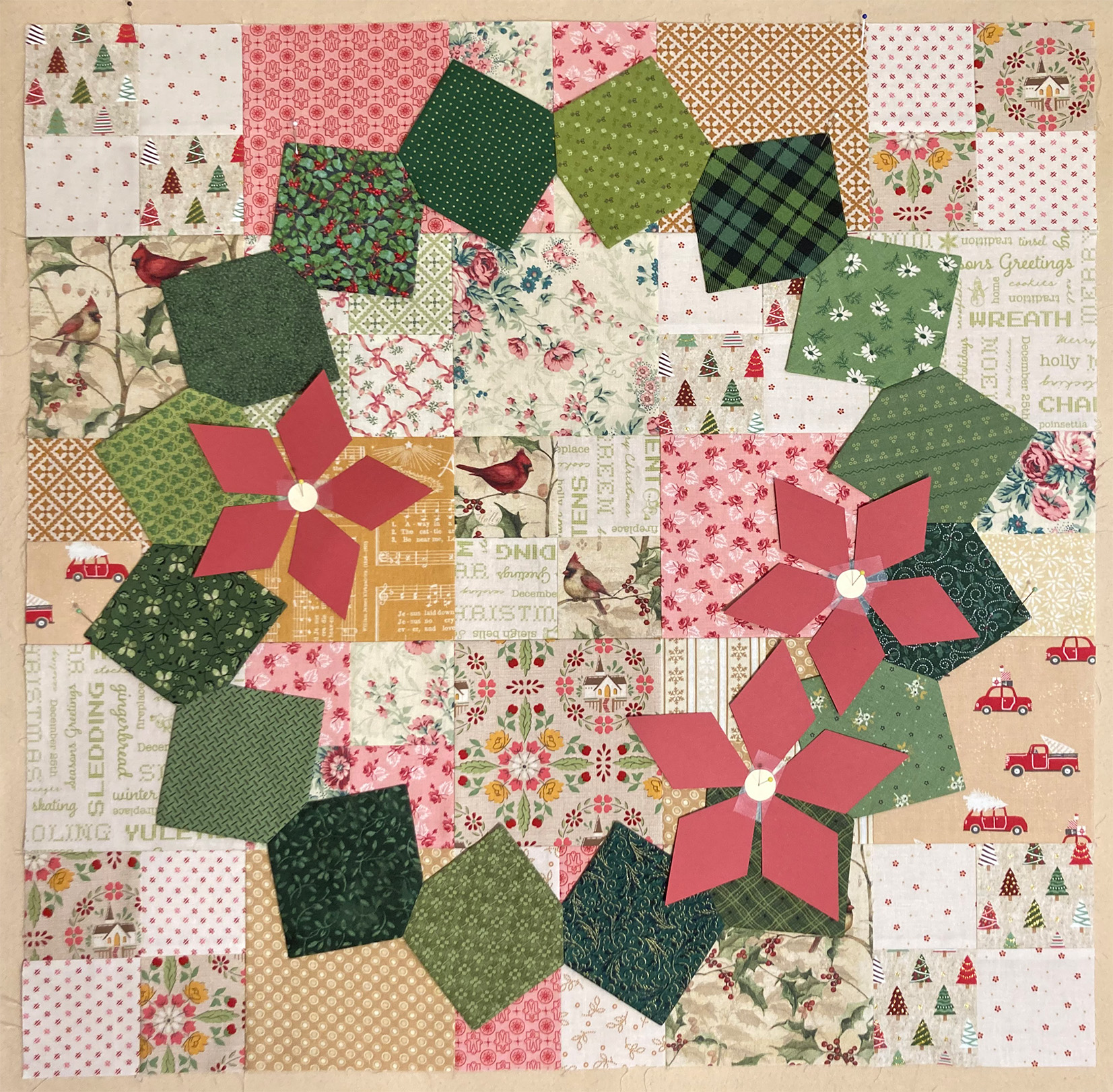 I'm thinking to add some applique poinsettias, so I'm trying out my idea with cut paper pieces first. - photo 3