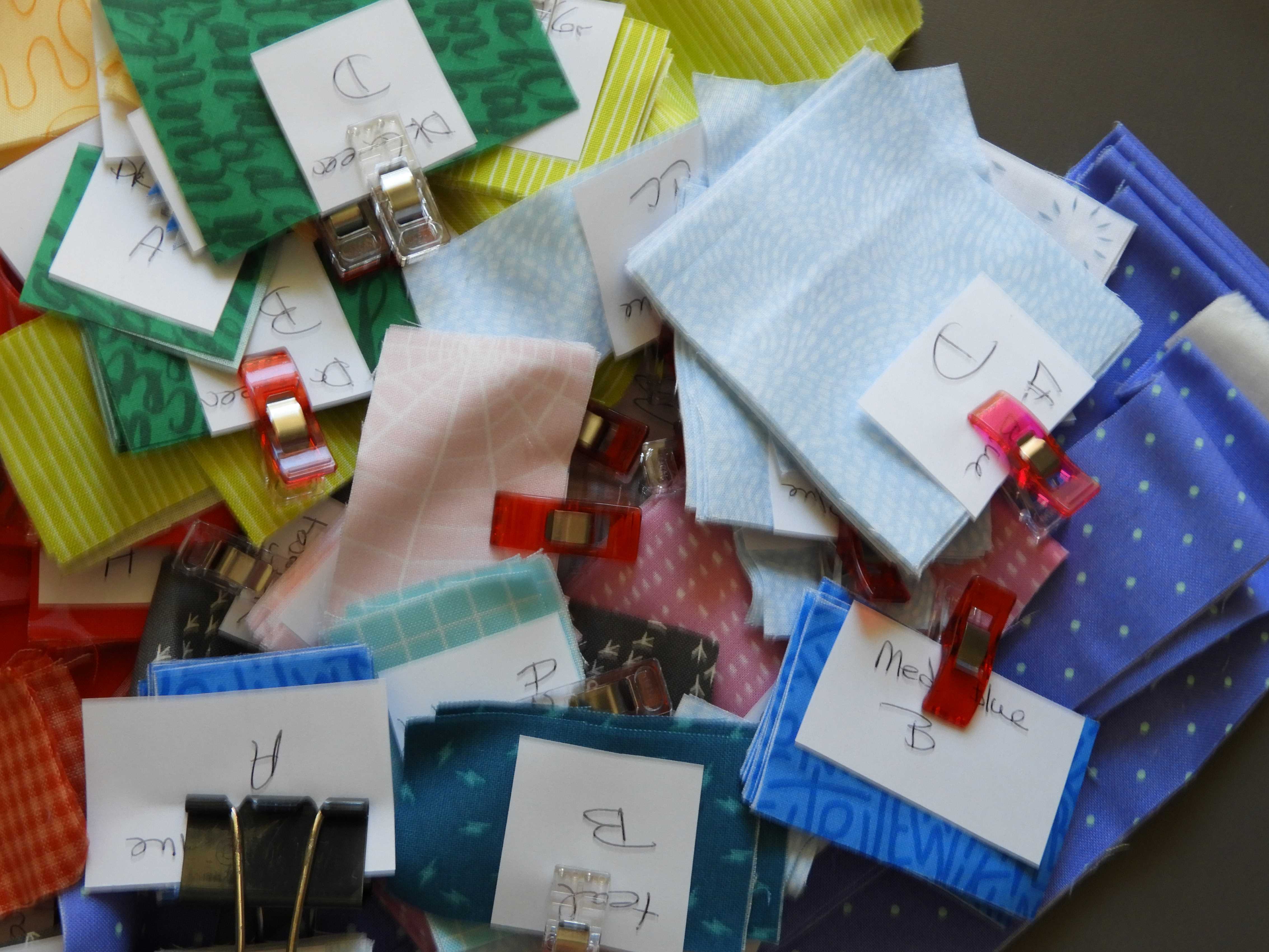 Here are my fabric selections for the Aromatic Rings block from Rainbow Quilts for Scrap Lovers by Judy Gauthier