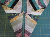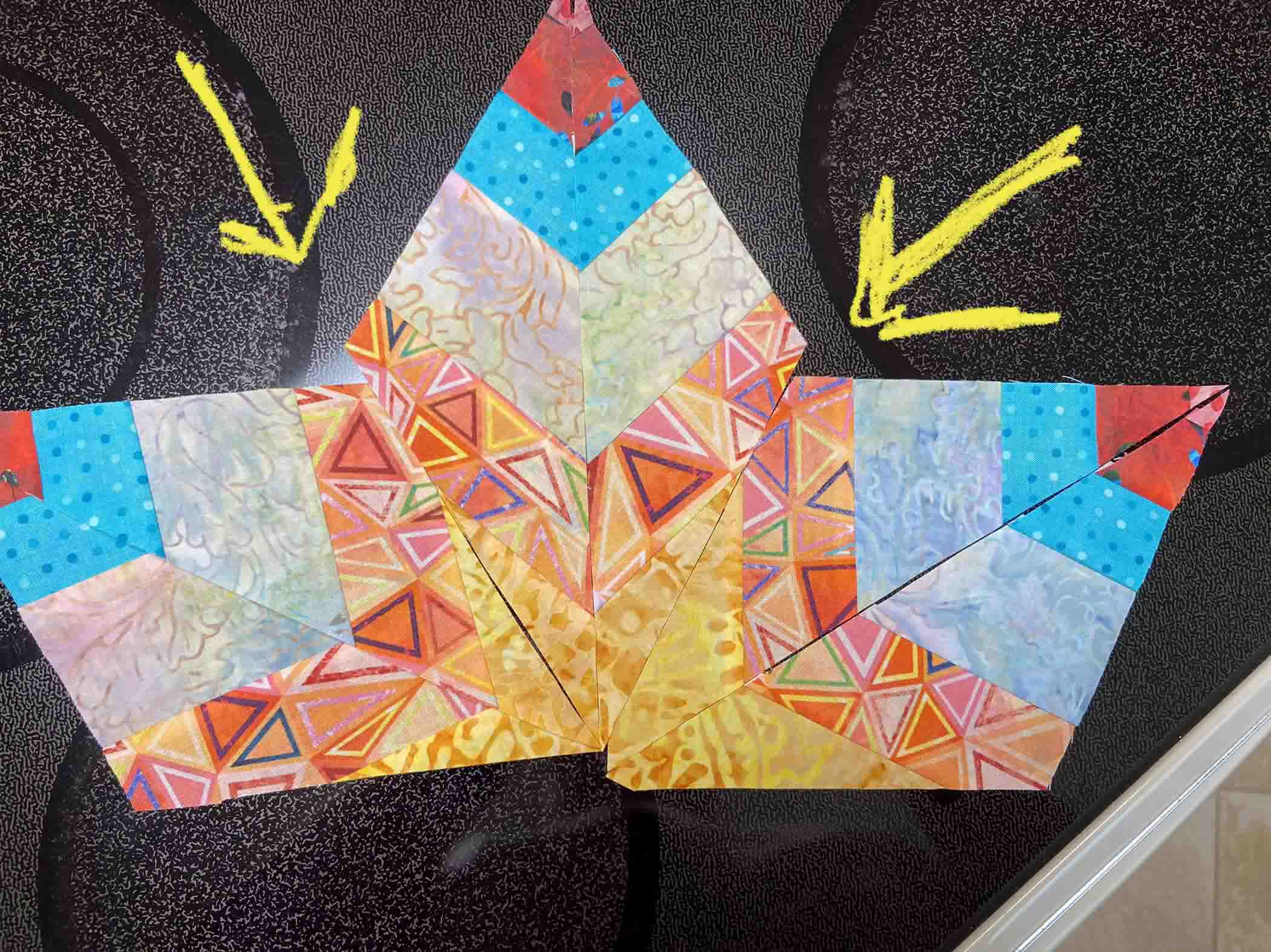 Karen, I think you just need to back the left and right ones up to the two corners of the middle one. I can't tell if they do, but the seams between your mostly yellow one and mostly pinks one should line up.