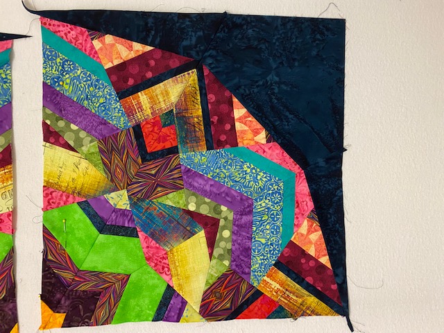 on the diagonal lines. Be sure to keep the seam that goes against the kaleidoscope the same so it matches up. When you attach