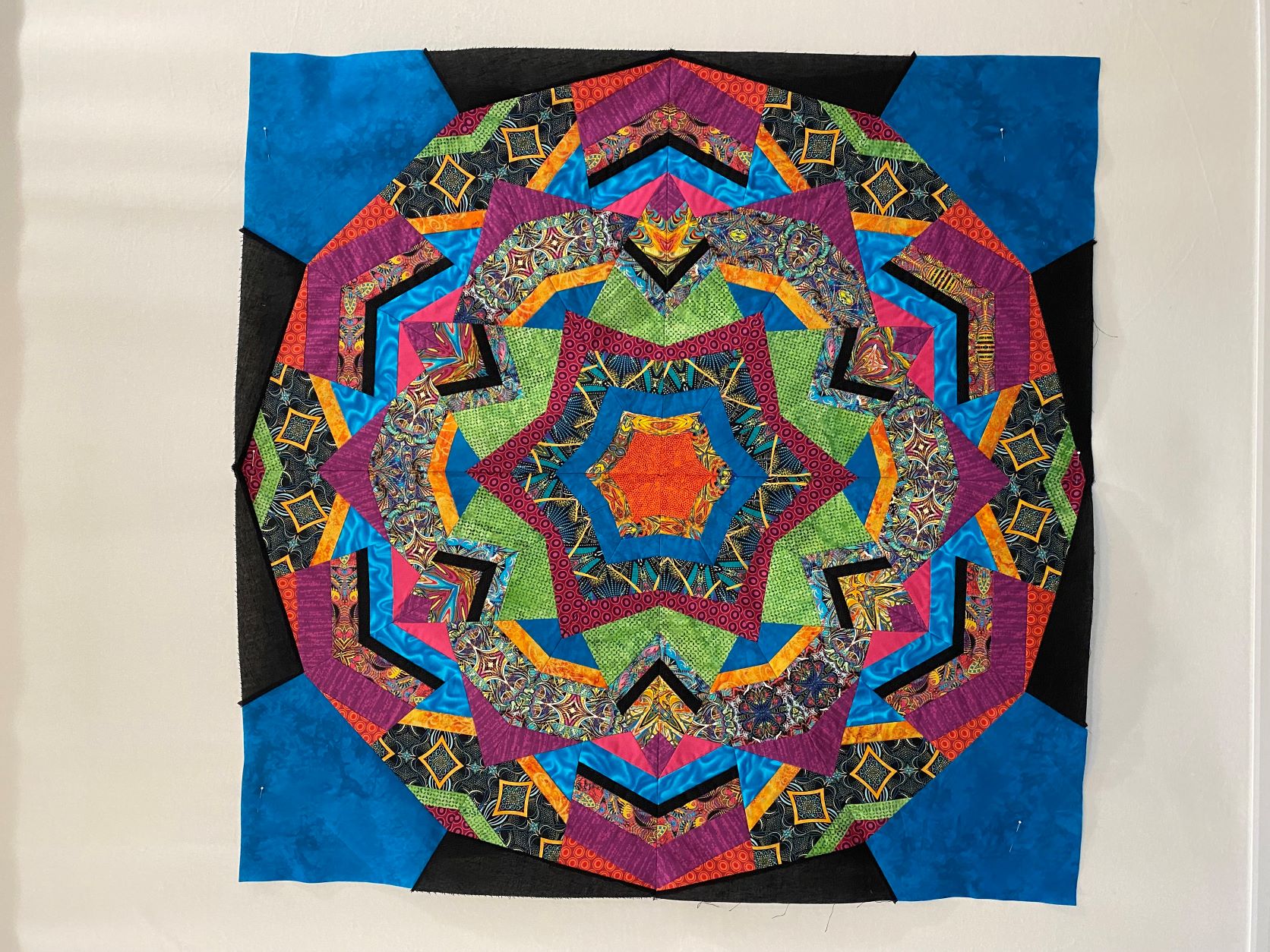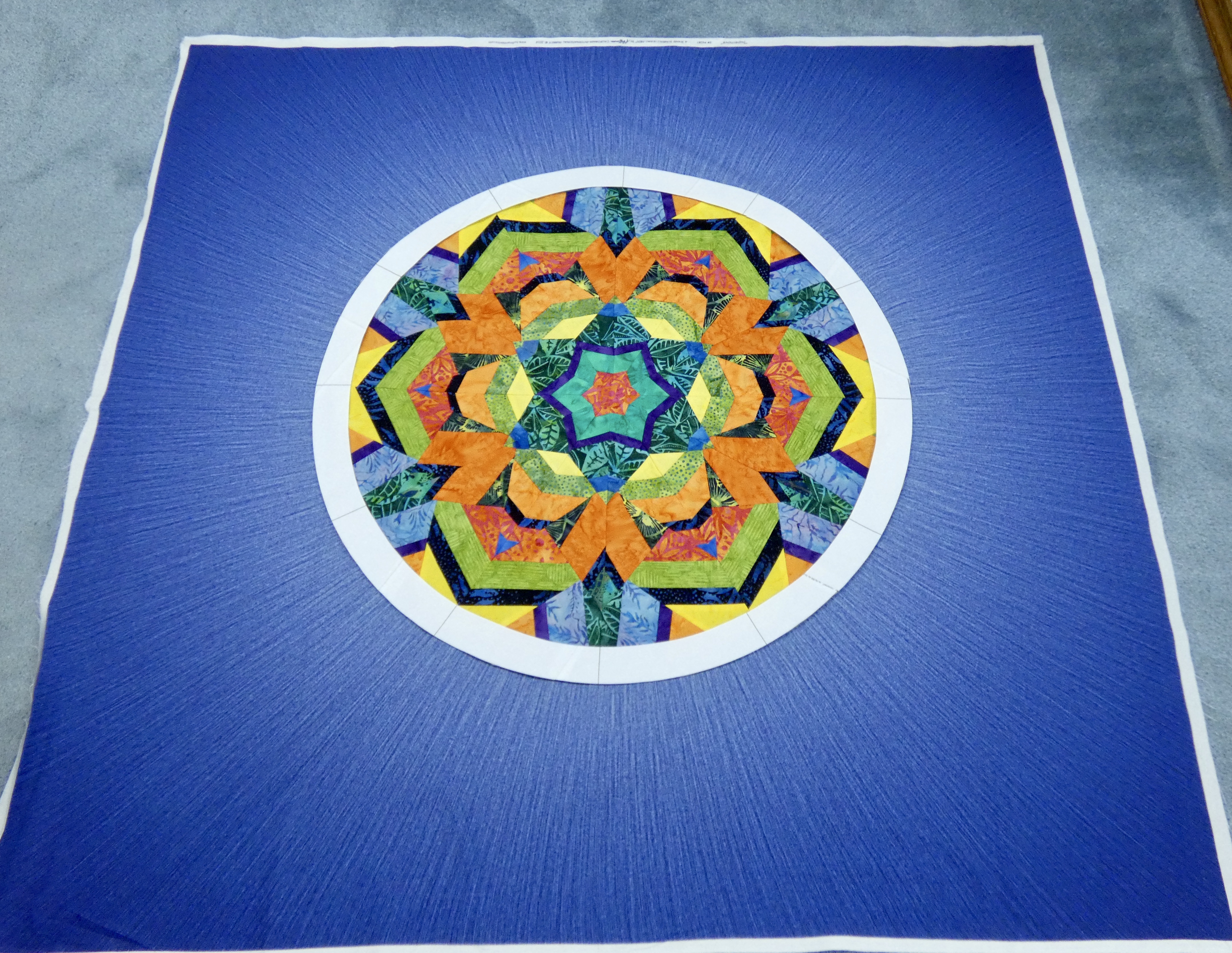 make the background one piece. No idea if it will work. I might add another solid circle around the kaleidoscope and then applique on the rest of the panel. HelenWLast edited by Helen W.; 08-11-2021, 02:42 PM.HelenW