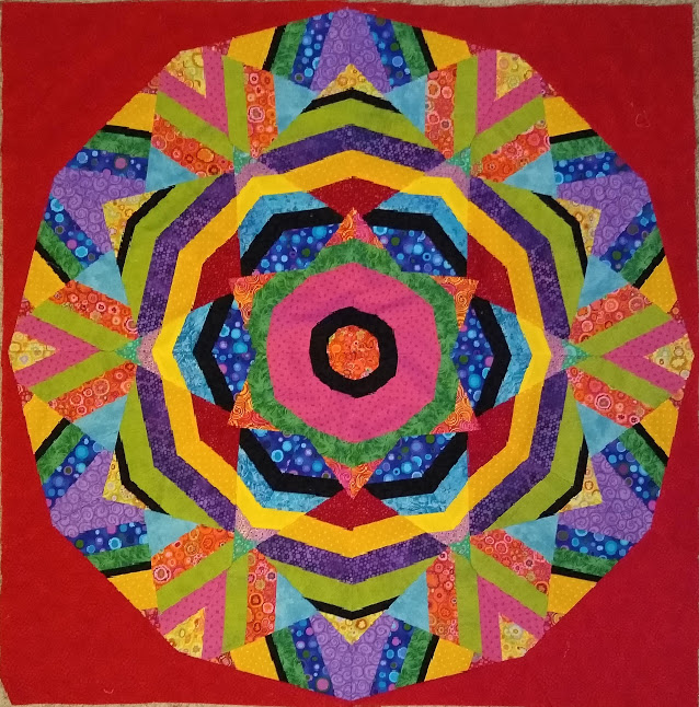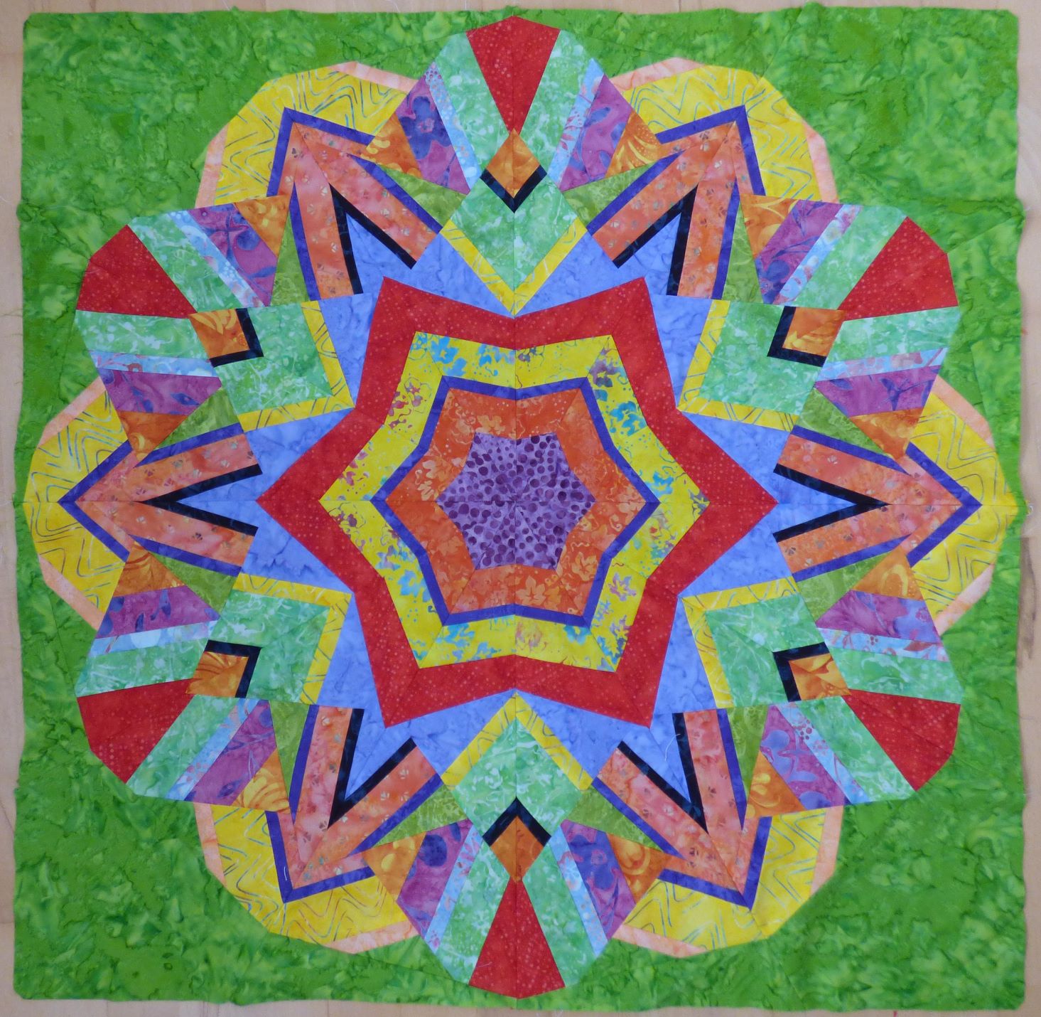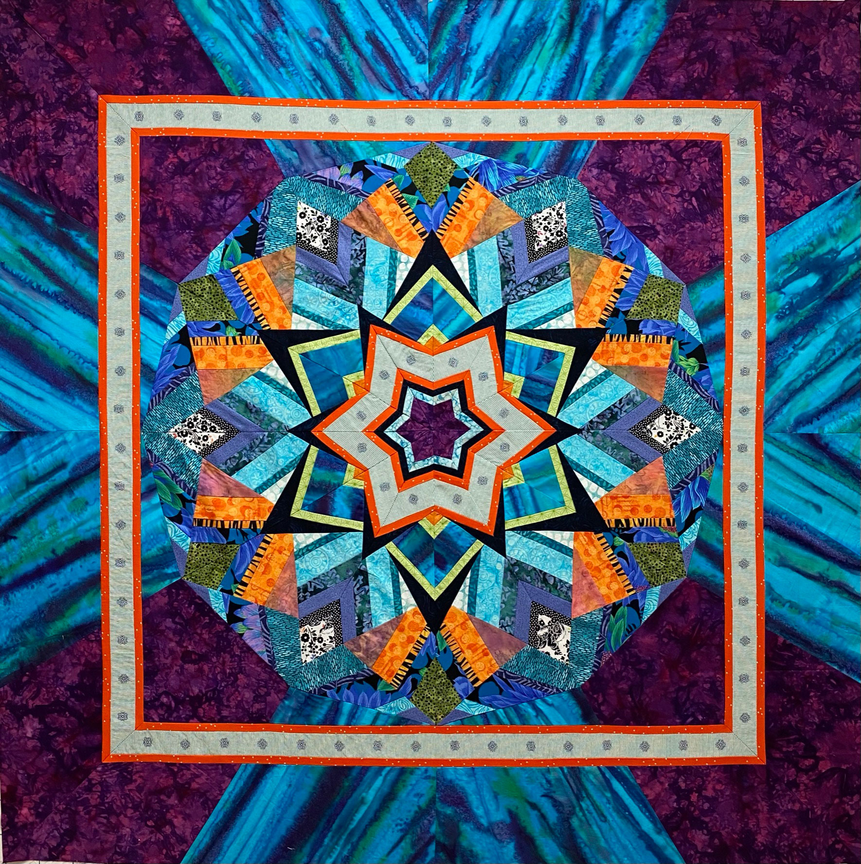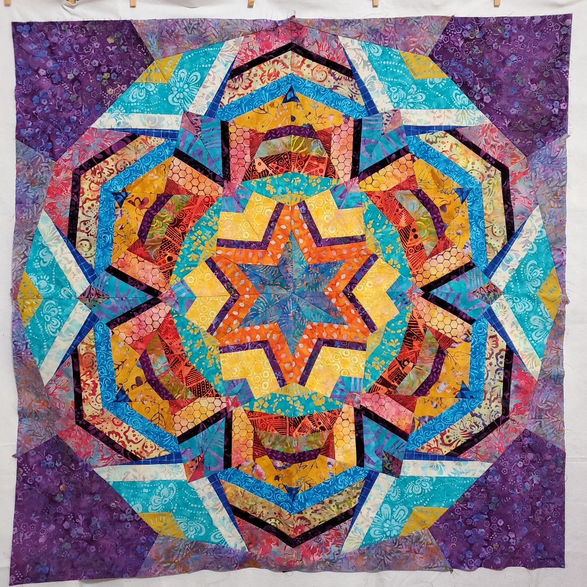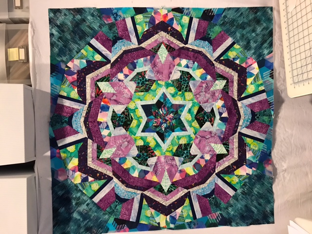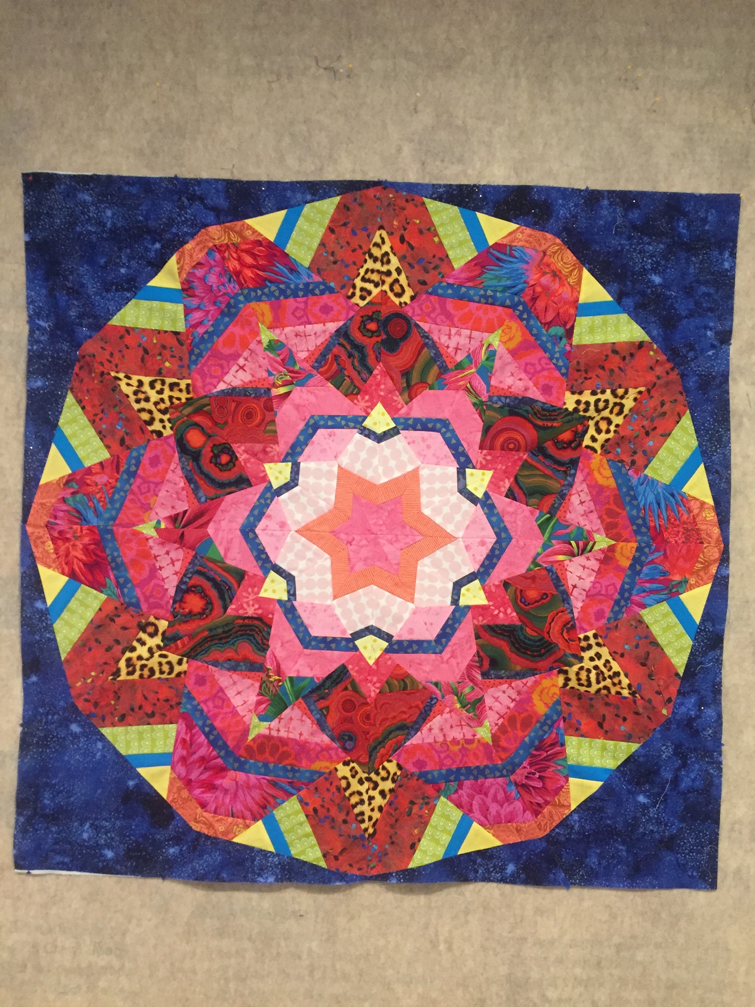 I’ve been watching Ricky demonstrate Kool Kaleidoscopes since I joined TQS in February 2007, but when he said he used his HOSPITAL GOWN, I knew it was finally time for me to jump on the bandwagon because my son was in the hospital then with Covid! He is home now, and I asked his wife to send me his hospital gown because the dots reminded me of the Corona Virus images. He was in the hospital for 12 days and there are 12 dots in the central star.