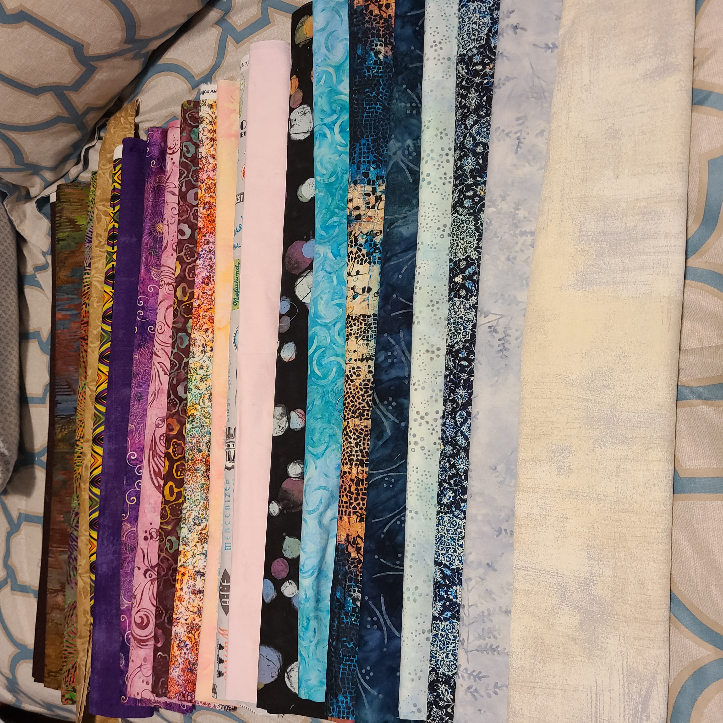Here are my fabric selections for the Aromatic Rings block from Rainbow Quilts for Scrap Lovers by Judy Gauthier