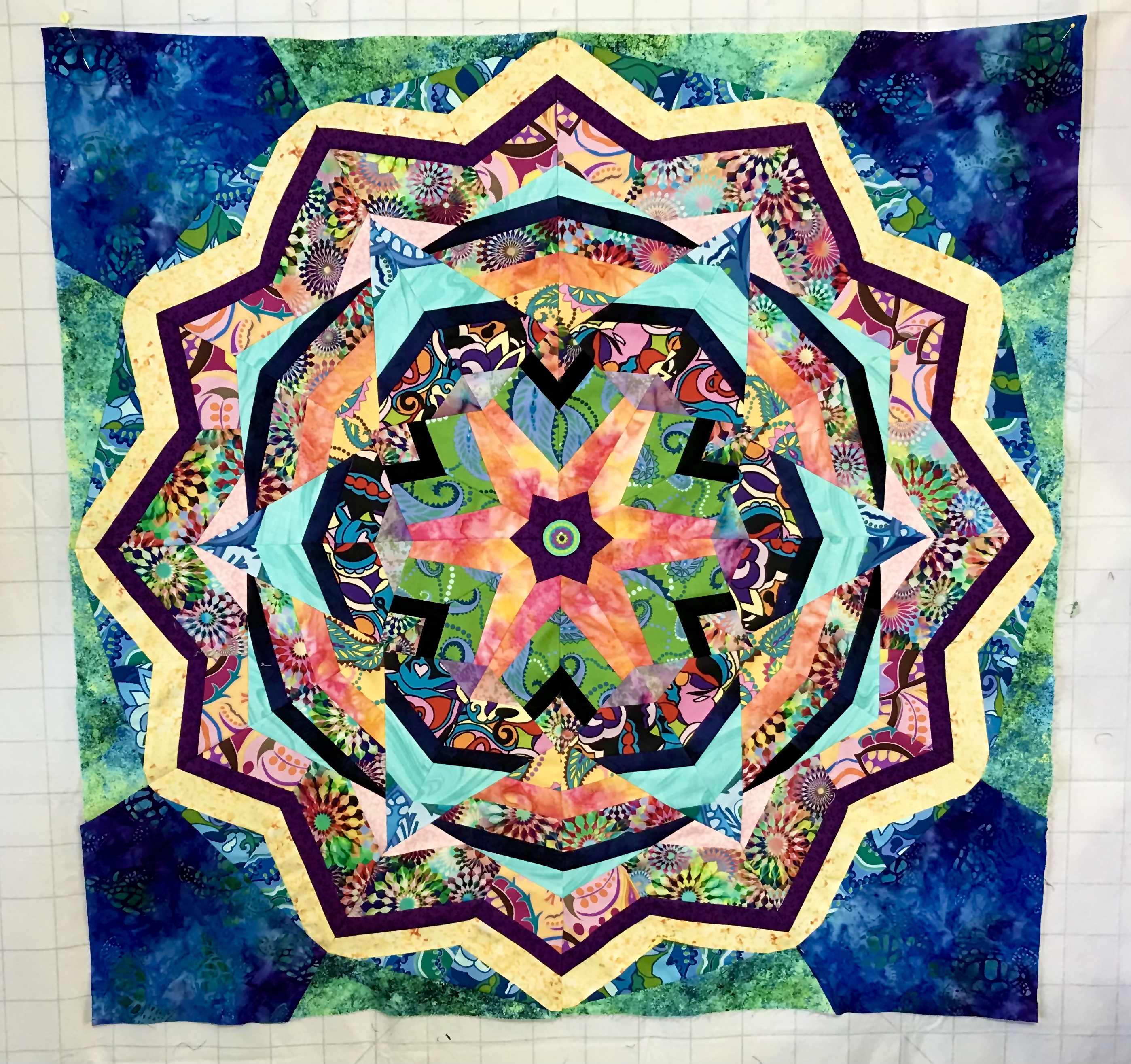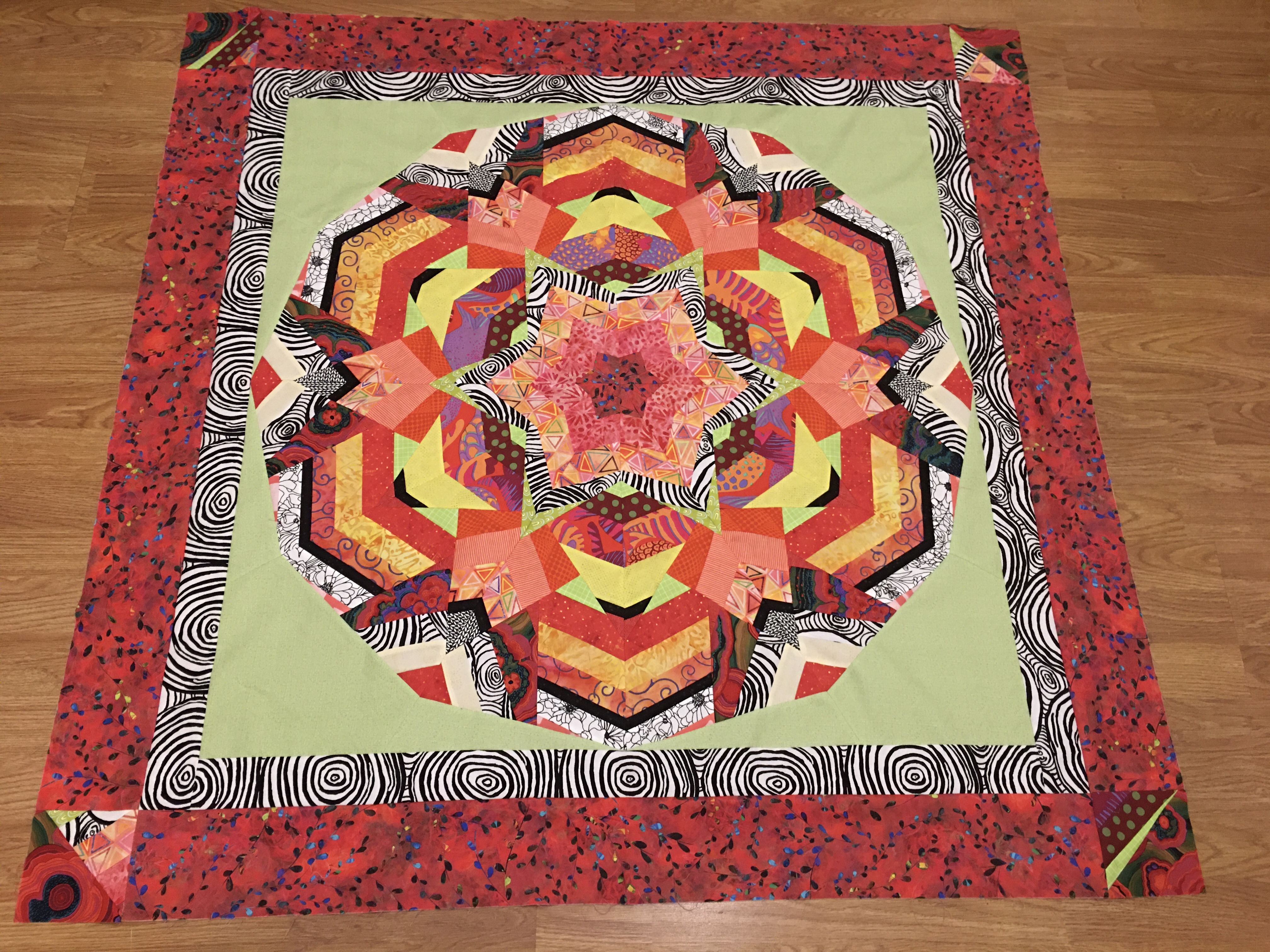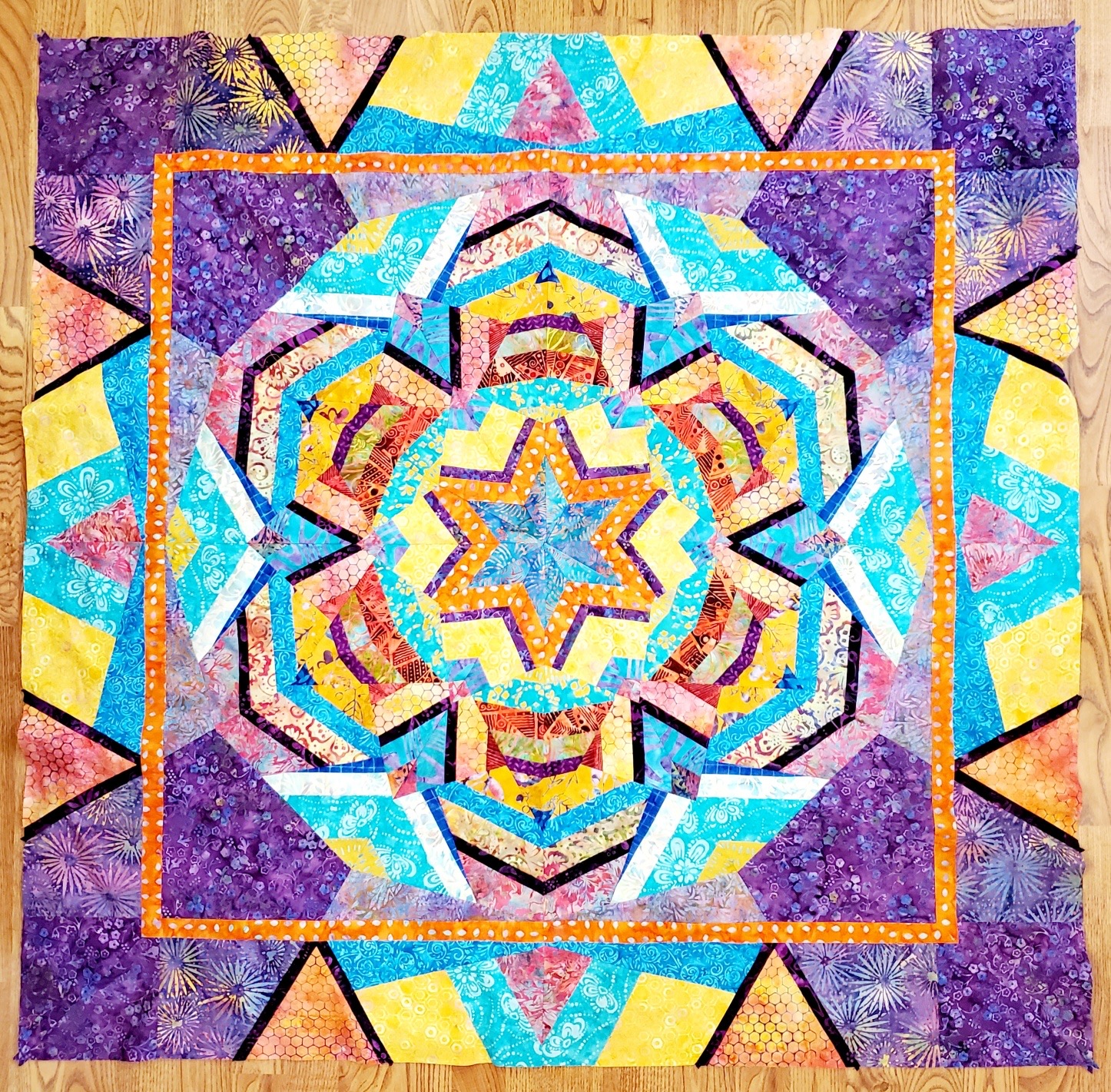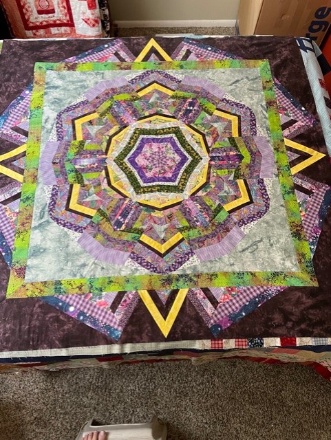 Just finished my top. I call it Pine Meadow Kaleidoscope. The mitered corners gave me trouble, but here it is. I also convinced my sister to make one. Thank you Ricky!Last edited by Annette M.; 08-14-2021, 02:09 PM.