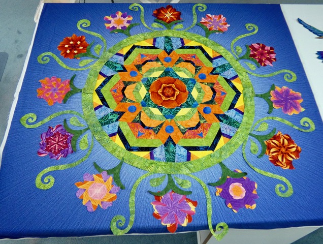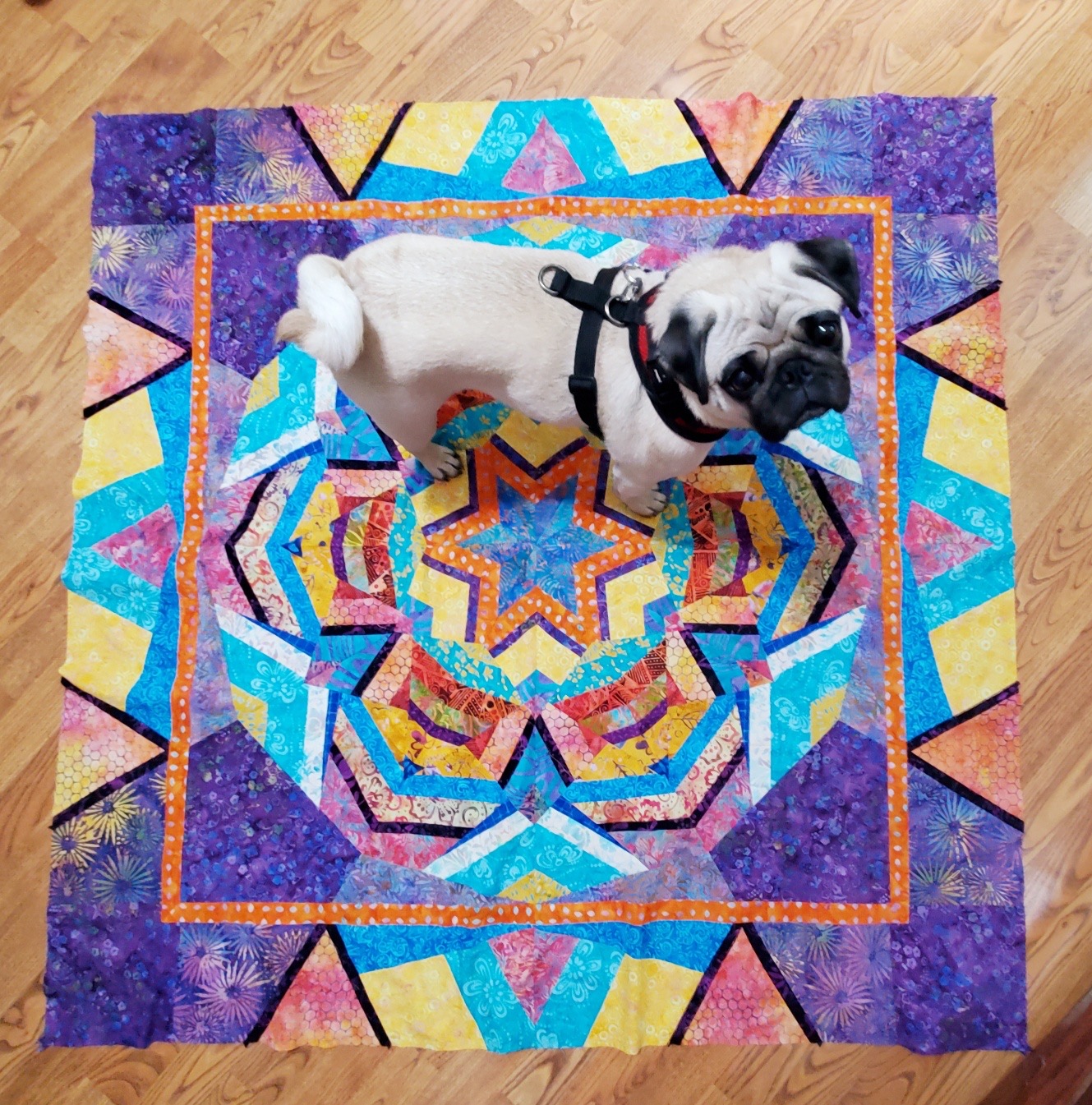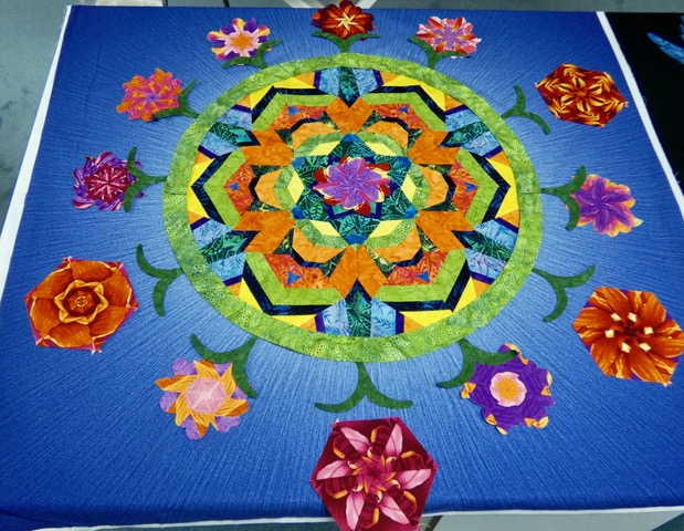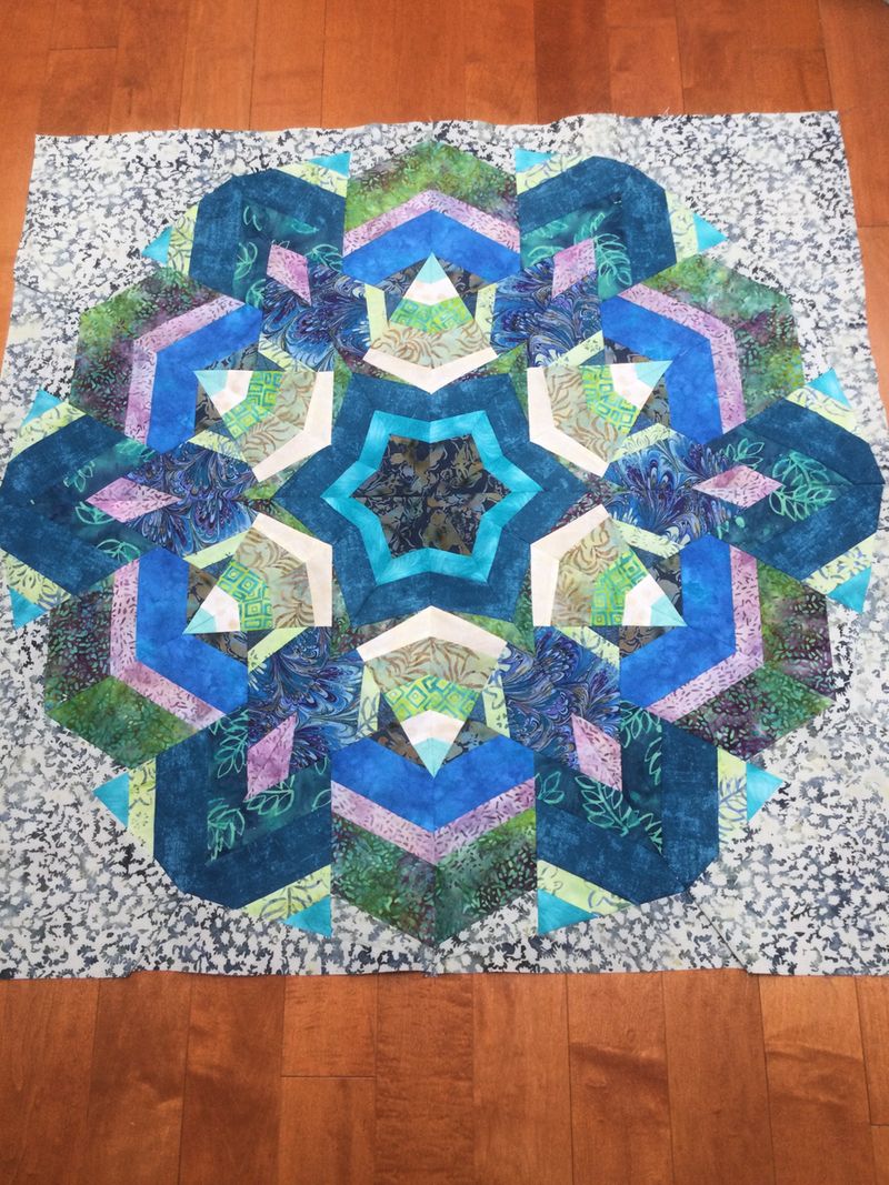 [FONT=Calibri]Finally finished to the point of adding borders. For the butts and wedgies I decided to use the same fabric that I had used at the bottom of one wedge. I like the result that the blue points seem to float. Thank you, Ricky for your detailed excellent instruction and tips. You are a genius with math. I have some rippling so will probably do a plain border. Next time I will do better![/FONT]
