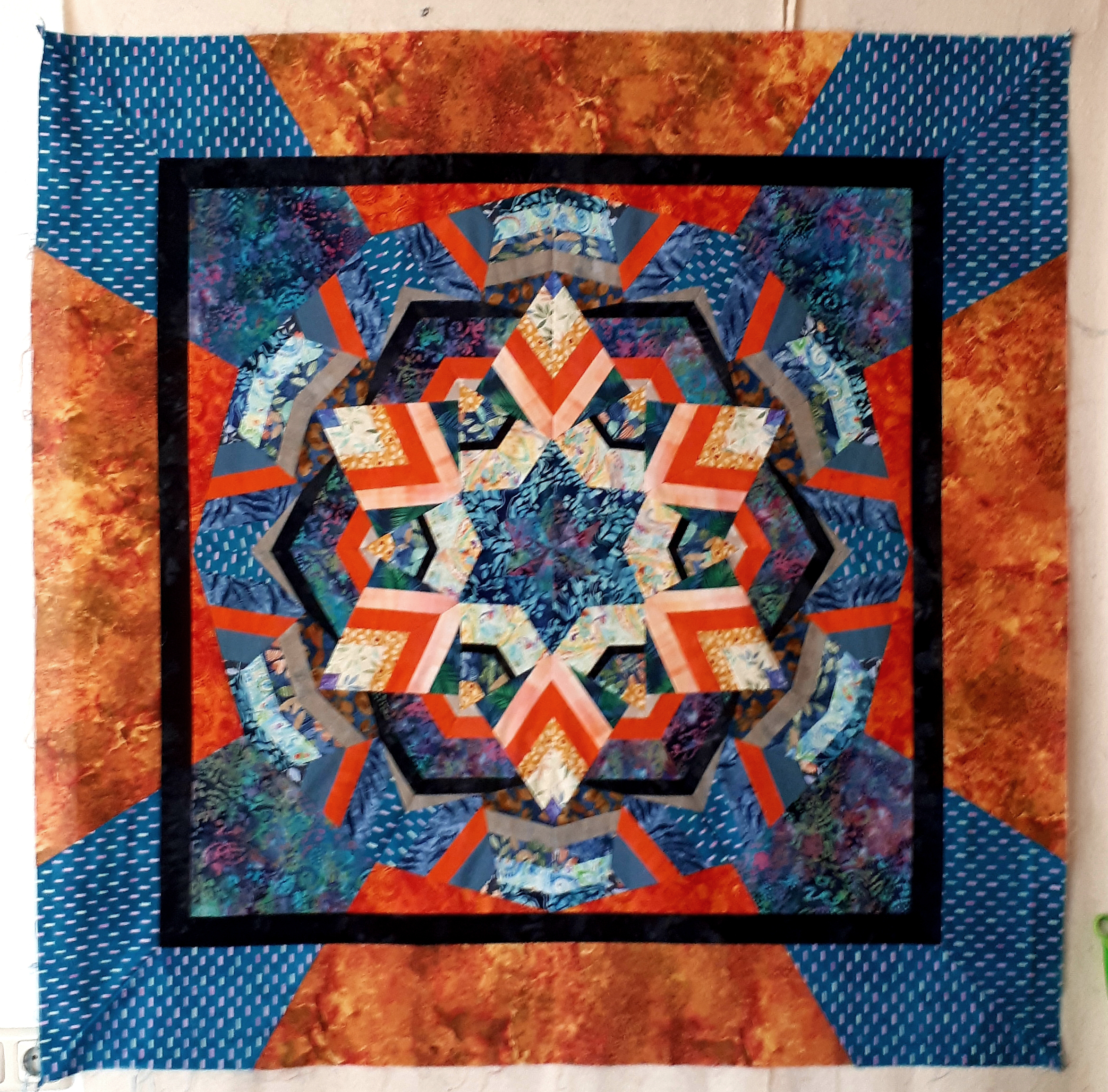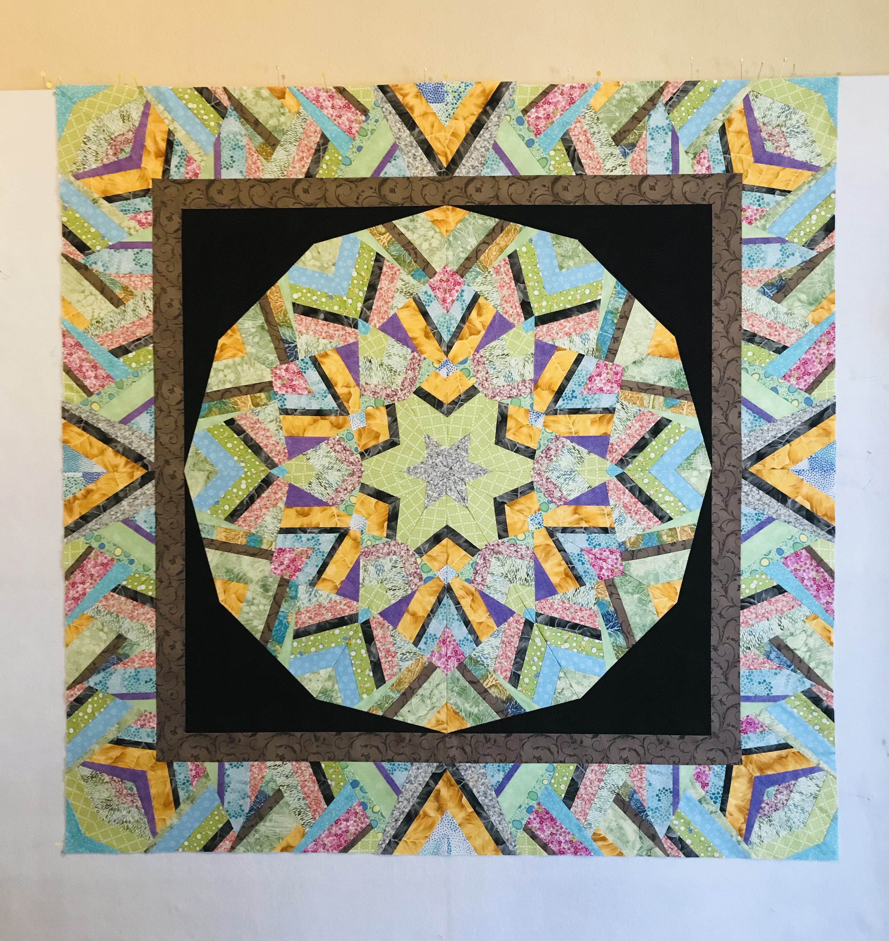 I’m finally laying out a border design & trying to use some extra wedges. I’ll appliqué the small blocks onto the border pieces before I attach the border. Ricky is right, the border takes creativity & time. I’m so happy I attempted this technique, thank you all for helping me learn. I think a good title is Kaleido-KrazeeLast edited by midnight33; 08-30-2021, 07:58 PM.