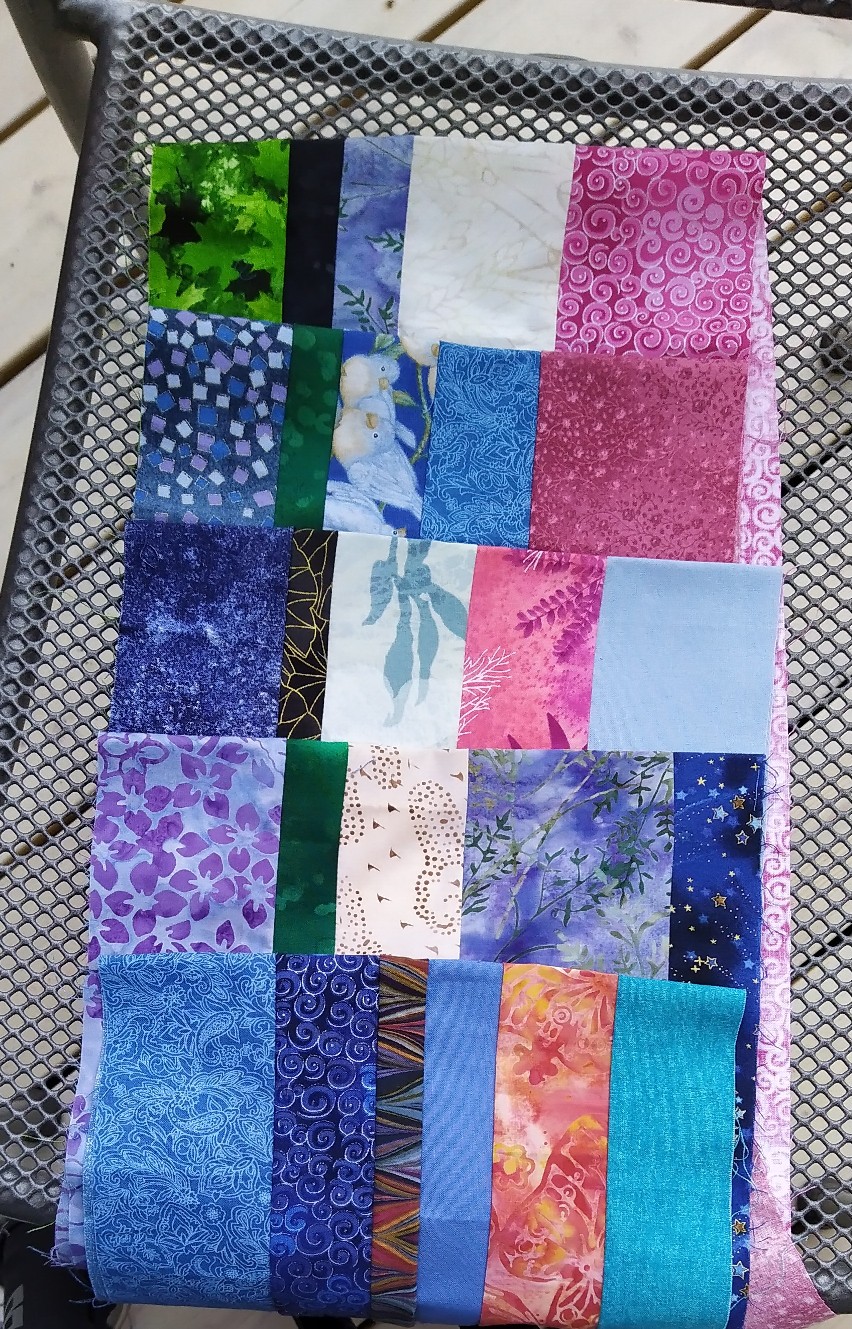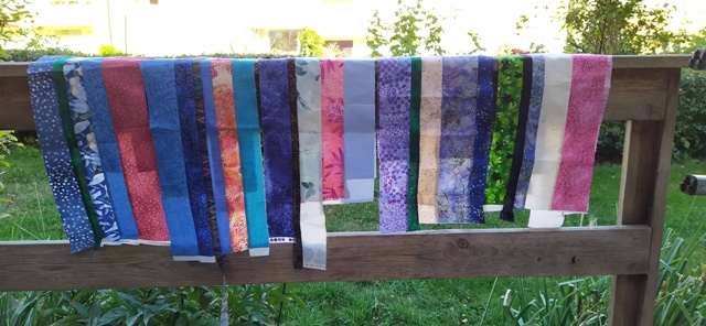 All the strata sewn and pressed, the pattern is made, and finally I had a chance to take photos outdoors so the colours can come out somewhat true.