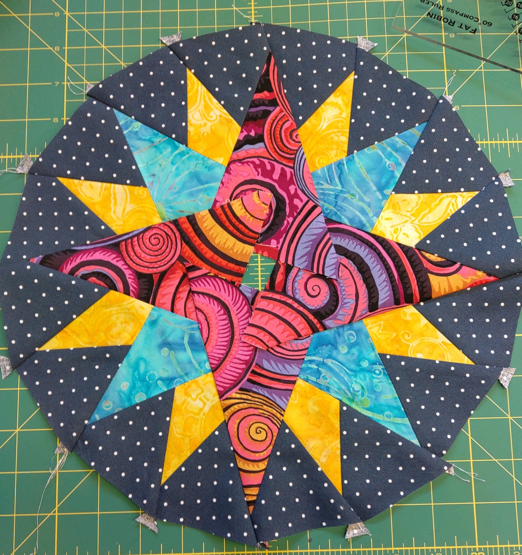 I finished my practice compass block, it measures 12" - if I make a 12" circle I will not have enough fabric to press to the back - what did I do wrong? My block lays flat, I have more than 1/2" above the points...