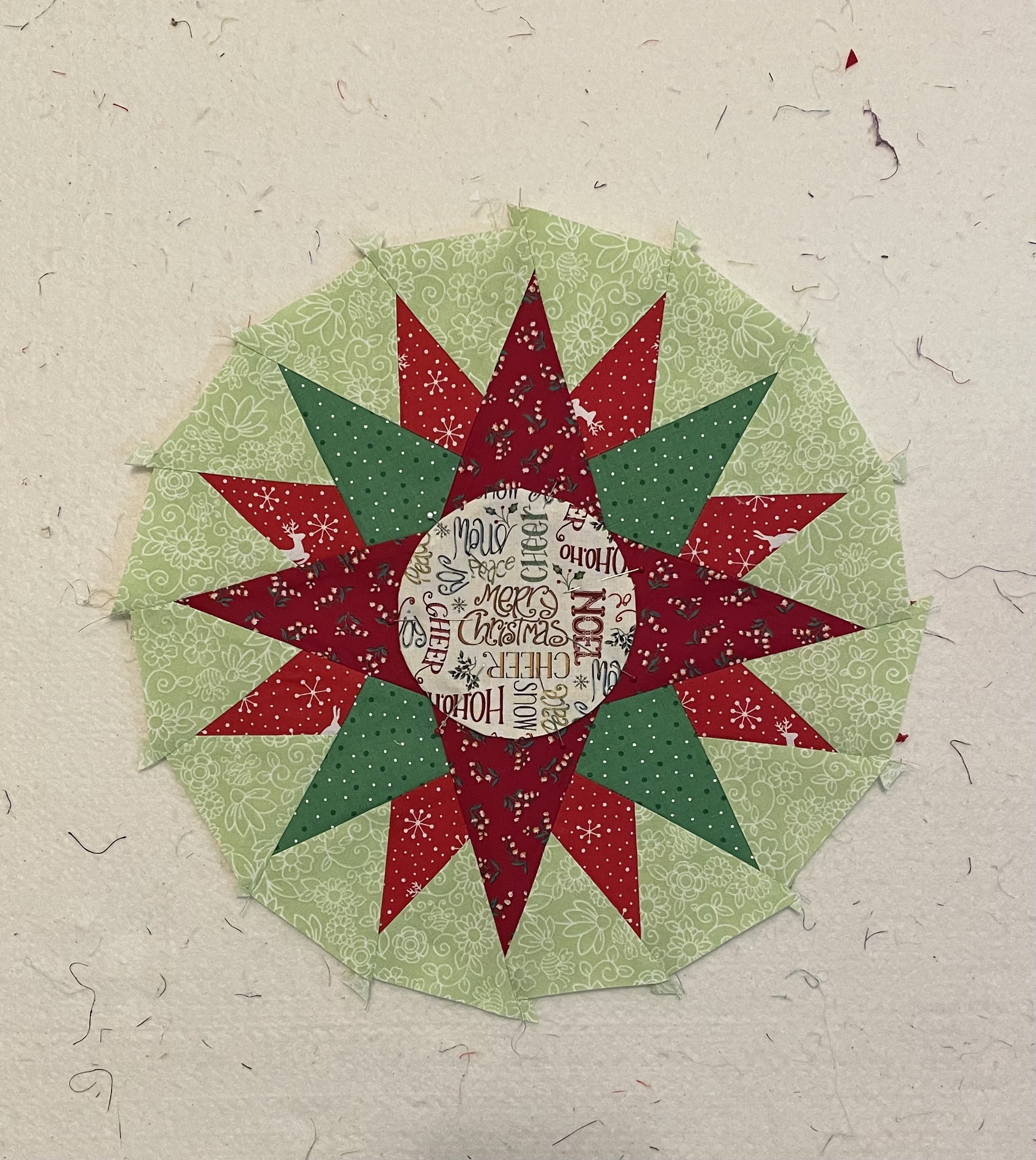 My practice block complete. Pretty close to size, thanks to your detailed instructions. I cut the strips for the Christmas version. Thanks for leading us on this project. I've had the rulers for awhile, but before this I had only made one small table topper. So grateful for this opportunity.