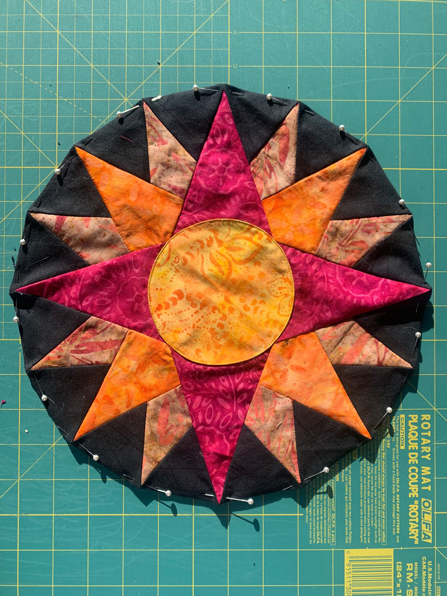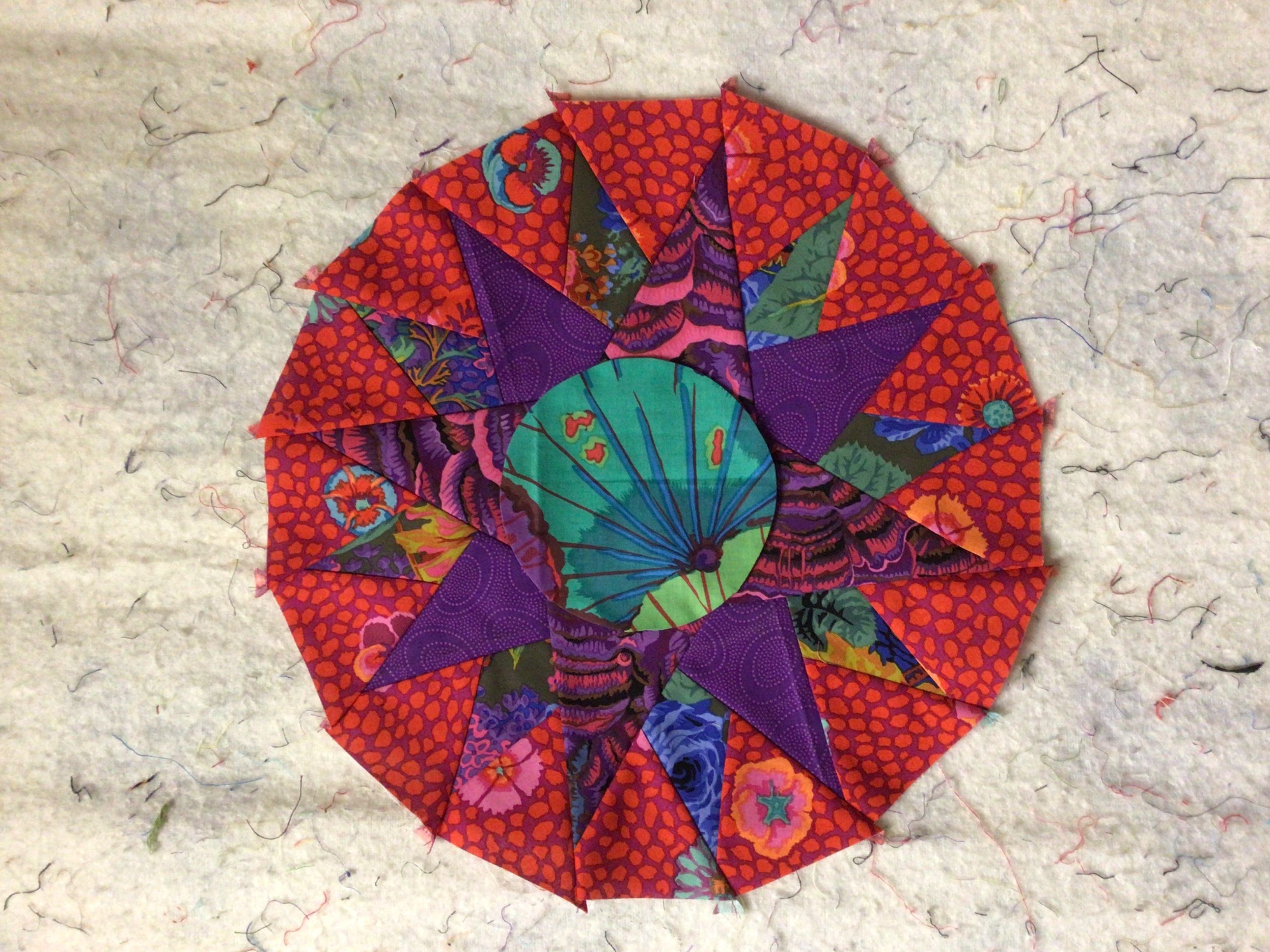 I'm in Spain with a limited stash of batiks. I haver NO idea what fabrics will be used for the second and third phases of this quilt, but it doesn't matter. I am so in awe of Robin's mind, it blows me away how she came up with this process. It's pure geometry, pure GENIUS! Thanks, Robin, I'm enjoying this so much!
