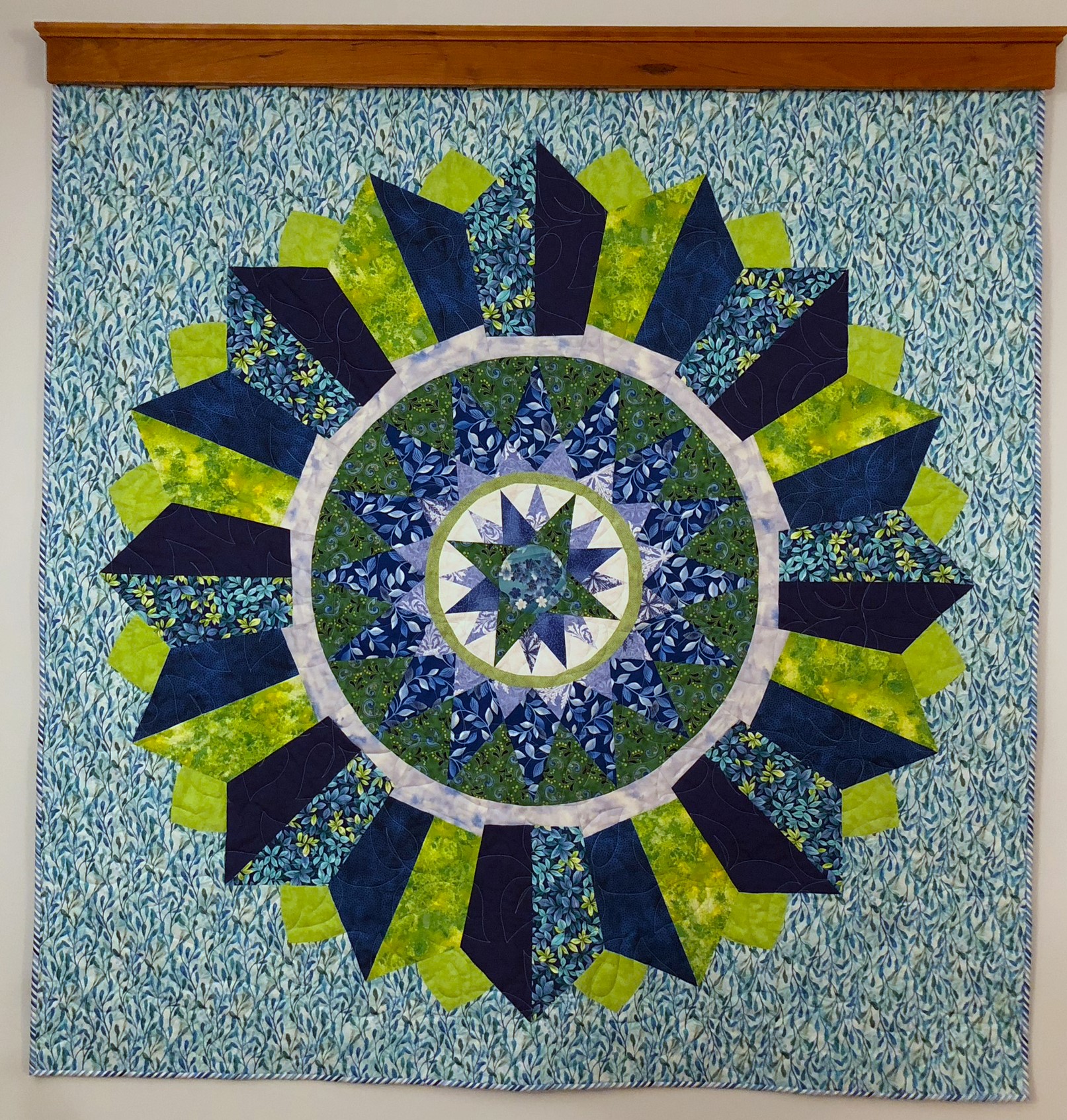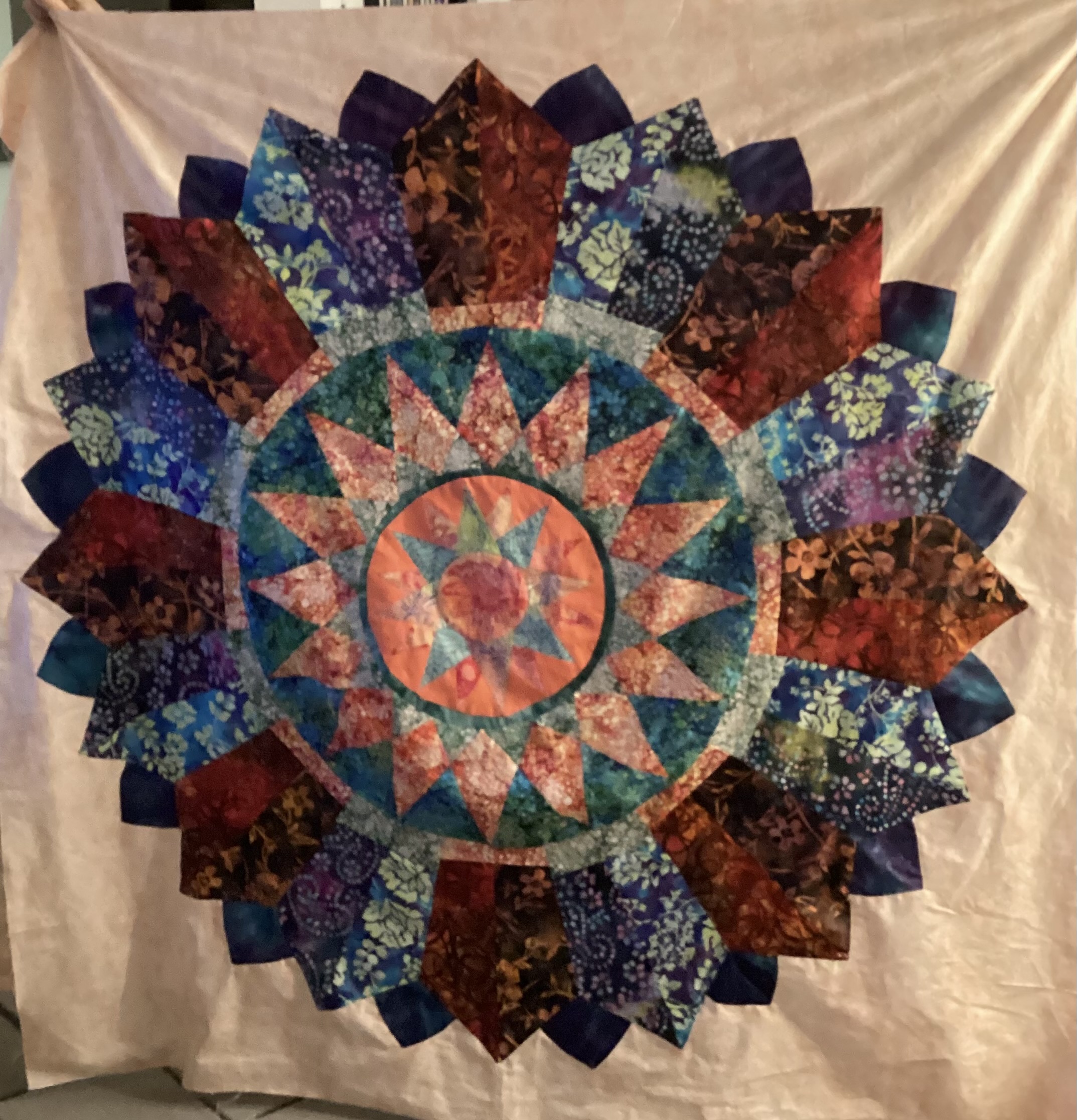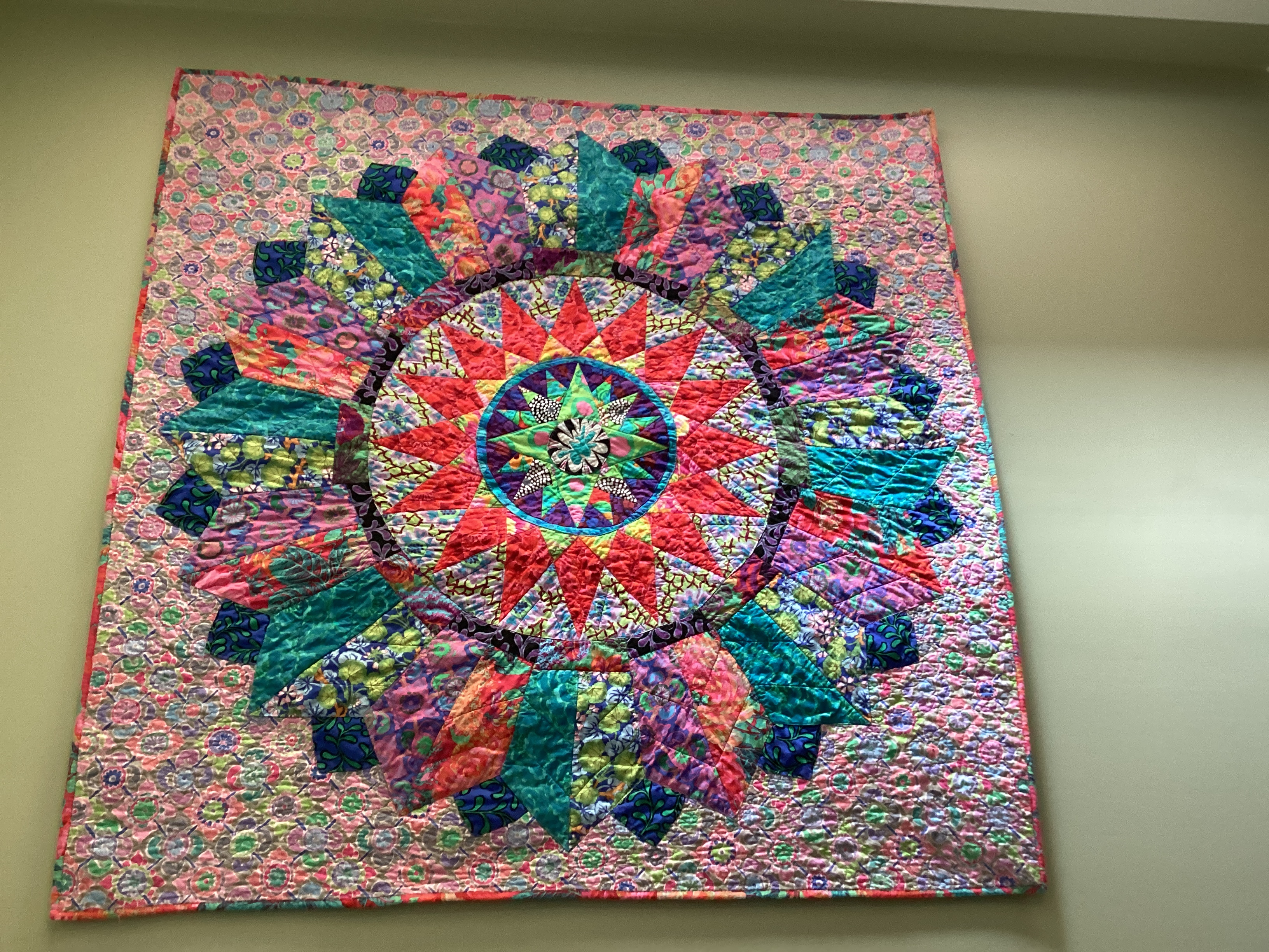 Just finished hand-sewing the binding and now this baby is done and hanging on the wall! Woo-hoo! This is one quilt that I enjoyed working on from beginning to end. The instructions were very clear but made even better with the video directions. Thank you so much TQS to making this available and Robin Ruth for developing this project and walking us through with such skill.