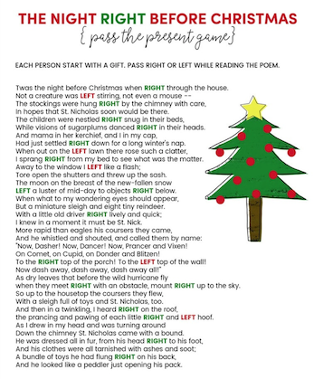 own gifts. Then someone reads a story or poem with lots of the words" right" and "left" in it. You do what the word says, pass